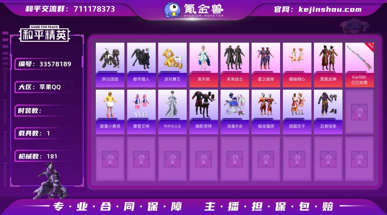hs69788 苹果手Q-4王牌印记-7粉装-5特效枪-1载具-59140热力值-145套装-181枪皮