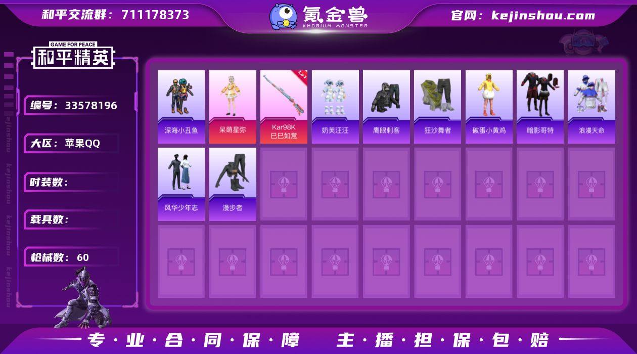 hs68080苹果手Q-1王牌印记-2粉装-4特效枪-18257热力值-61套装-60枪皮 【2粉装】角色-异瞳寒姬,角色-呆萌星弥 【4特效枪】Kar98K-巳巳如意/2级,DP-28-豹影疾电/4级,Mk14-福马献瑞/3级,UMP45-萌骑冒险/4级 【3稀有紫装】暗影哥特,深海小丑鱼,浪漫天命 【61稀有时装】异瞳寒姬,呆萌星弥,SS38特训,浪漫天命,暗影哥特,深海小丑鱼,狂沙舞者,粉团憨憨,白糯汤圆,大橘大利,战术大师,元素星魂,琴音绮想,甜心娇蕊,夜幕侵蚀,画境星梦,星影赞美诗,云魄琉璃,绯色魅影,元气之梦,书海巡游,薄荷星砂,雪国风尚,蓝冰羽,马上来财,SS35特训,SS36特训,军械专家,龙的传人,SS37特训,特训学院,猎鹰,浓情蜜辣,蓝色运动,漫步者,黑色伏地魔,SS34特训,竞技名士,猛禽,长空猛禽,街头潮人,冷焰舞者,魅力单车,奶芙汪汪,青涩时光,狙击之神,红釉青花,鹰眼刺客,雨过天青,福马献瑞,冰冻风暴,玲珑侠影,暖心橘喵,破蛋小黄鸡,疯狂小兔子,绮丽涂鸦,风华少年志,夏日倾情,莱茵河畔,香榭午后,柠萌假日 【61稀有枪械】Kar98K-巳巳如意/2级,Mk14-福马献瑞/3级,UMP45-萌骑冒险/4级,DP-28-豹影疾电/4级,Mini14-鸡智如我,AKM-绿洲时空,12-乌木金纹,PKM-紫幽梦,QBU-夜幕侵蚀,ACE32-画境星梦,M1加兰德-画境星梦,MP5K-画境星梦,Mk14...