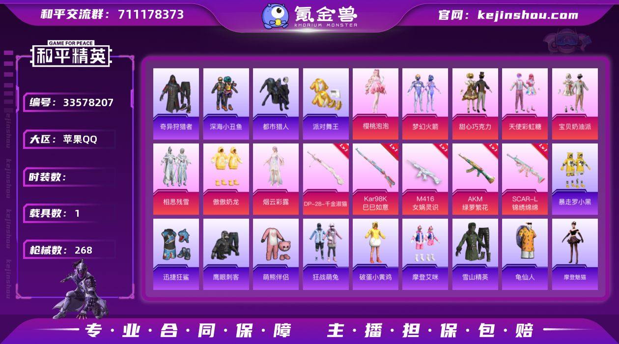hs67796苹果手Q-3王牌印记-10粉装-10特效枪-1载具-89518热力值-223套装-268枪皮-1卓越印记 【10粉装】套装-梦幻火箭,角色-樱桃泡泡,套装-傲傲奶龙,套装-相思残雪,角色-智耀战神,人物-小舞·灵珑,角色-烟云彩露,套装-宝贝奶油派,套装-甜心巧克力,套装-天使彩虹糖 【10特效枪】AKM-绿萝繁花/5级,SCAR-L-锦绣绵绵/5级,DP-28-豹影疾电/5级,SCAR-L-灵驹仙姬/3级,DP-28-千金淑猫/5级,UMP45-萌骑冒险/3级,Mk14-福马献瑞/5级,M416-女娲灵识/3级,燃烧瓶-天降桃花/5级,Kar98K-巳巳如意/5级 【12稀有紫装】都市猎人,Mark.06,派对舞王,奇异狩猎者,暗影哥特,深海小丑鱼,浪漫天命,雪山精英,迅捷狂鲨,小丑鱼,龟仙人,萌熊伴侣背包(3级) 【1稀有载具】九霄玄鹿 【223稀有时装】甜心巧克力,梦幻火箭,宝贝奶油派,天使彩虹糖,小舞·灵珑,樱桃泡泡,智耀战神,傲傲奶龙,相思残雪,烟云彩露,迅捷龙虾,SS38特训,都市猎人,浪漫天命,奇异狩猎者,龟仙人,Mark.06,雪山精英,暗影哥特,深海小丑鱼,小丑鱼,迅捷狂鲨,派对舞王,暴走罗小黑,狂战萌兔,Alan Walker,萌趣咩咩,星河浪客,龙魂突击队,极冰使者,小熊娃娃,摩登魅猫,白糯汤圆,绒宝小鹅,星途旅人,冰河战士,鱼渊荷华,青团波波,大橘大利,燕燕于飞,战术大师,雏菊兔...