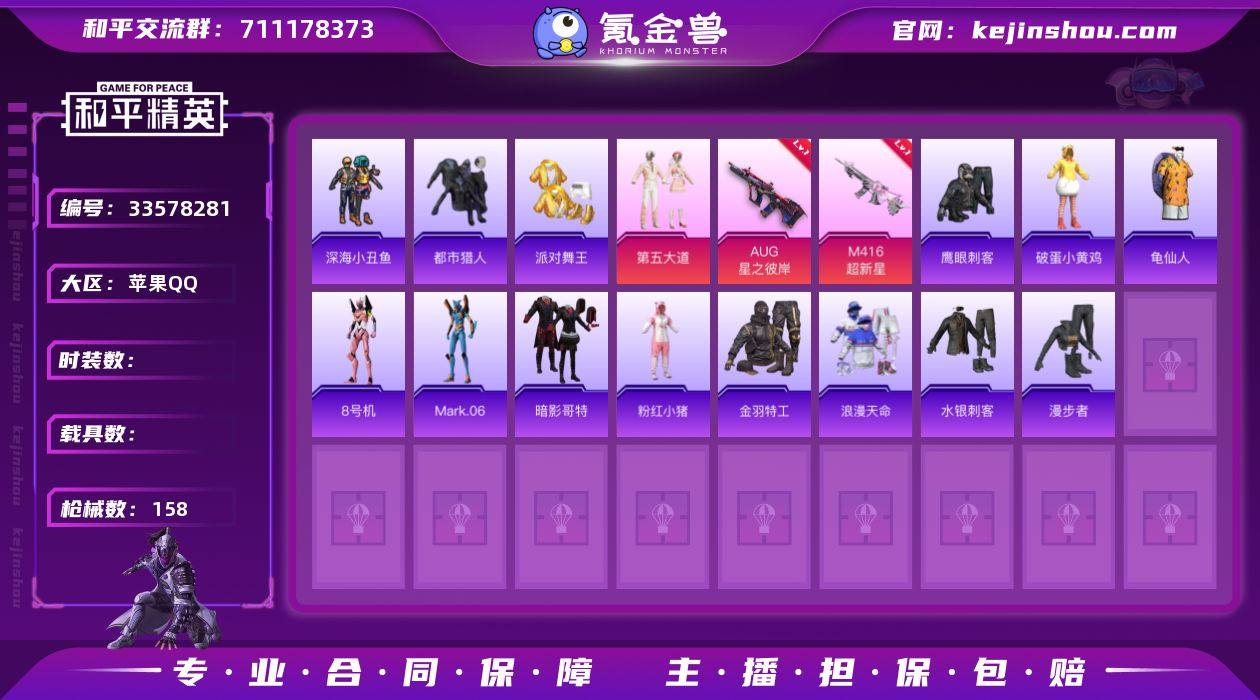 hs69174 苹果手Q-4王牌印记-4粉装-6特效枪-46254热力值-119套装-158枪皮-1卓越印记