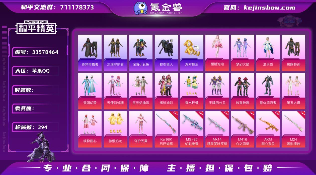 hs67143 苹果手Q-26王牌印记-17粉装-10特效枪-热力值-309套装-394枪皮-6卓越印记-3传奇印记 【17粉装】套装-宝贝奶油派,套装-缤纷油彩,套装-梦幻火箭,套装-幻彩电音,套装-香水柠檬,套装-极限特训,套装-第五大道,套装-飒粉甜心,套装-雪国幻梦,套装-天使彩虹糖,角色-洛天依,套装-王牌四分卫,角色-守护天翼,角色-复仇流浪者,角色-樱桃泡泡,套装-傲傲奶龙,套装-放客神游 【10特效枪】Mk14-精灵梦叶罗丽/7级,AKM-绿萝繁花/5级,MG-36-幻彩电音/7级,Mk14-福马献瑞/3级,DP-28-豹影疾电/5级,M416-心之恋语/7级,M24-莲影清波/7级,AKM-甜心宝贝/7级,Kar98K-巳巳如意/5级,AKS-74U-森灵之息/5级 【18稀有紫装】都市猎人,Mark.06,派对舞王,2P战斗服款,沙漠守护者,奇异狩猎者,暗影哥特,深海小丑鱼,浪漫天命,雪山精英,浪漫波比,迅捷狂鲨,东方飞龙,小丑鱼,龟仙人,许七安,暗夜魅影,萌熊伴侣背包(3级) 【308稀有时装】雪国幻梦,梦幻火箭,缤纷油彩,放客神游,赵灵儿,第五大道,宝贝奶油派,天使彩虹糖,洛天依,极限特训,樱桃泡泡,幻彩电音,傲傲奶龙,飒粉甜心,复仇流浪者,王牌四分卫,守护天翼,香水柠檬,迅捷龙虾,沙漠守护者,都市猎人,浪漫天命,奇异狩猎者,龟仙人,Mark.06,雪山精英,暗影哥特,深海小丑鱼,...