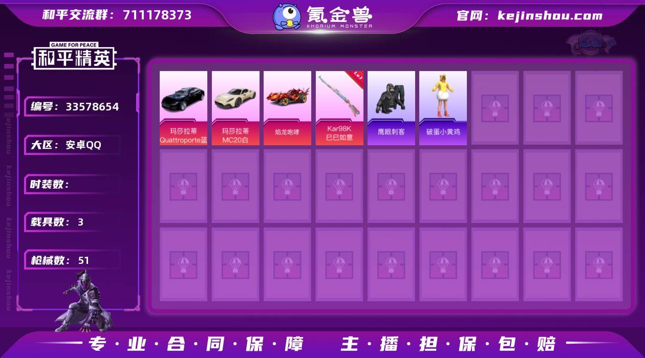 hs70094 安卓手Q-2王牌印记-4特效枪-3载具-17713热力值-40套装-51枪皮