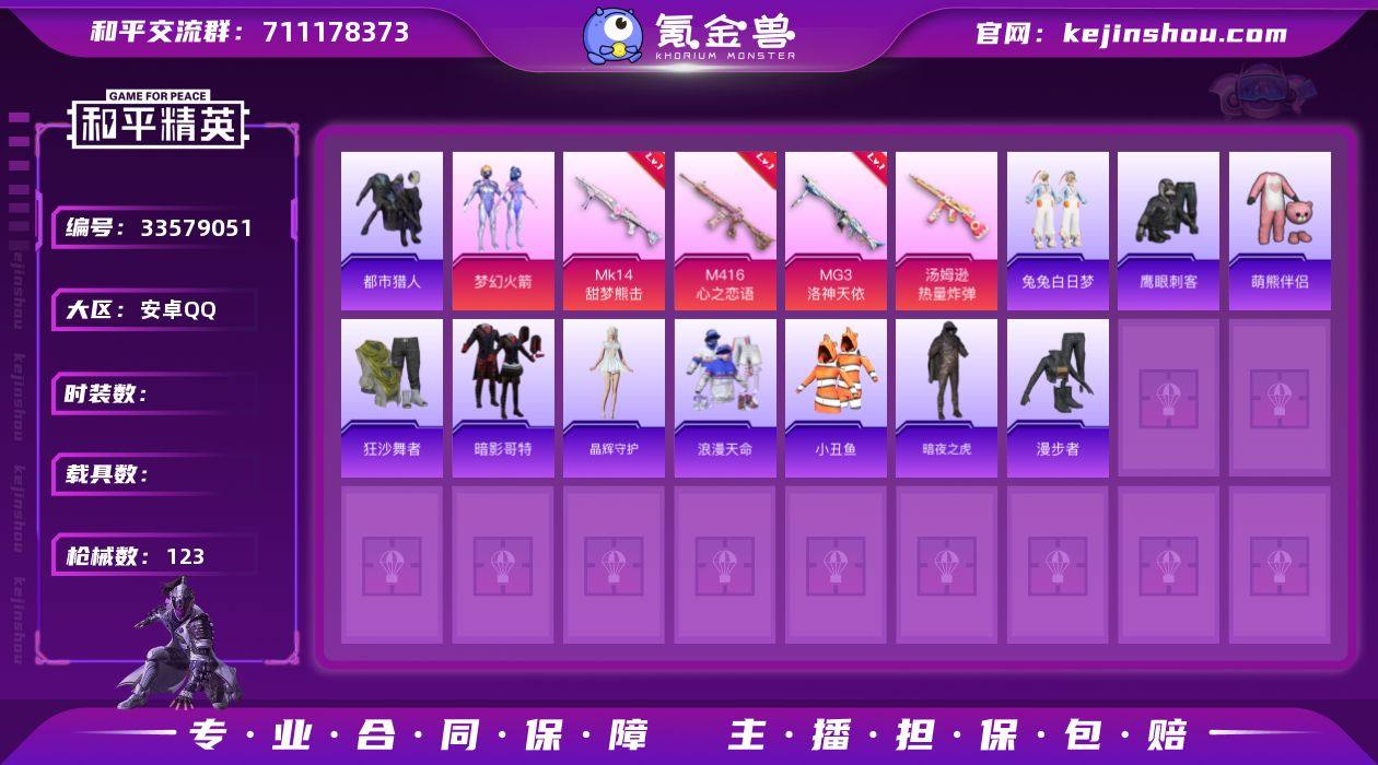 hs70098 安卓手Q-4王牌印记-2粉装-11特效枪-33891热力值-78套装-123枪皮-1卓越印记-1传奇印记