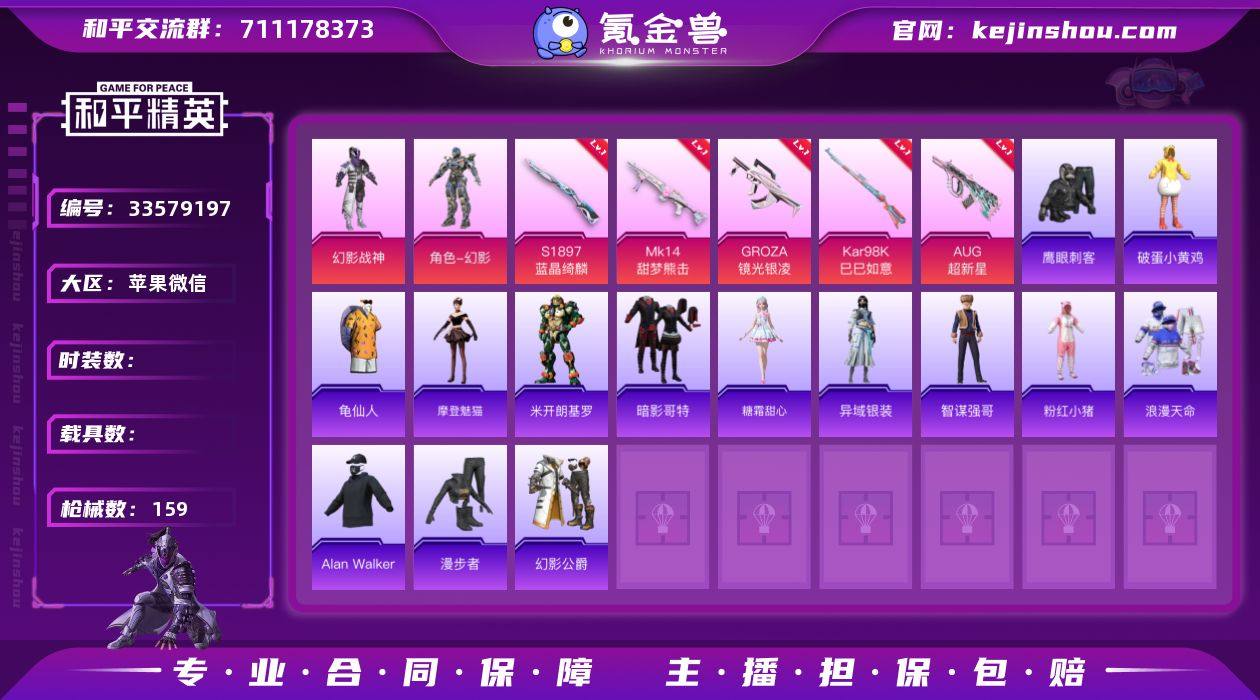 hs69830 苹果微信-5王牌印记-4粉装-10特效枪-43580热力值-113套装-159枪皮-2卓越印记-2传奇印记