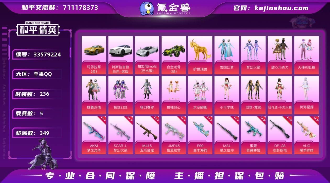 苹果 手Q-13粉装-12特效枪-5载具-9粉色飞行器-126910热力值-27王牌印记-236套装-349枪皮 【热门品类】:粉装-雪国幻梦,粉装-梦幻火箭,套装-浪漫天命,角色-军刀雅典娜,套装-龟仙人,套装-潮萌小黄鸭,套装-粉红小猪 【粉色套装】:粉装-甜心巧克力,粉装-天使彩虹糖,粉装-雪国幻梦,粉装-蝶舞迷情,粉装-梦幻火箭,粉装-极致幻想,粉装-银刃赛罗,粉装-橘柚倾心,粉装-太空嘟嘟,角色-小可学妹,套装-创世·救赎,角色-狂花道·不知火舞,角色-荧海星豚 【粉色枪皮等级】:AKM-梦之光华(七级),SCAR-L-梦幻火箭(七级),M416-五爪金龙(七级),AUG-暖羊咩咩(五级),蜜獾-异瞳寒姬(六级),UMP45-相思残雪(七级),P90-金丰海韵(七级),Kar98K-巳巳如意(五级),M24-星之信仰(七级),Mk14-盛世惊鸿(三级),M249-绝对恒星(一级),DP-28-豹影疾电(五级) 【粉色载具】:特斯拉Model X(珍珠白),玛莎拉蒂Ghibli(金),帕加尼imola(艺术银),合金龙骨(绿),僚机-圣域龙宝,护世瑞兽 【粉色枪皮】:AKM-梦之光华,SCAR-L-梦幻火箭,M416-五爪金龙,AUG-暖羊咩咩,蜜獾-异瞳寒姬,UMP45-相思残雪,P90-金丰海韵,Kar98K-巳巳如意,M24-星之信仰,Mk14-盛世惊鸿,M249-绝对恒星,DP...