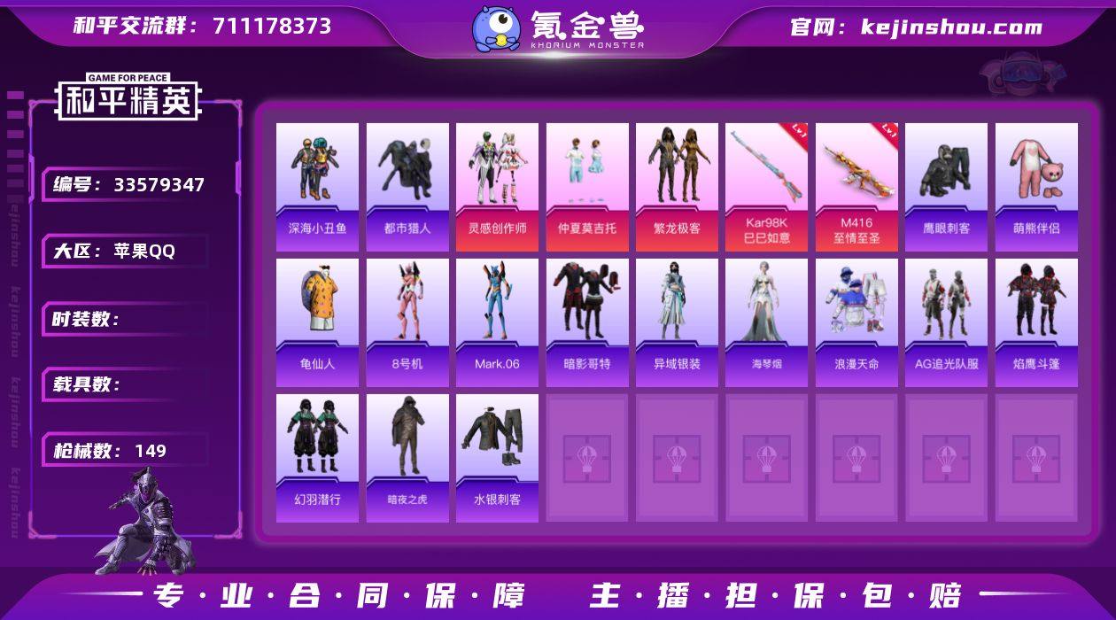 hs68417 苹果手Q-13王牌印记-有战神框-4粉装-6特效枪-44279热力值-93套装-149枪皮-1卓越印记-1传奇印记