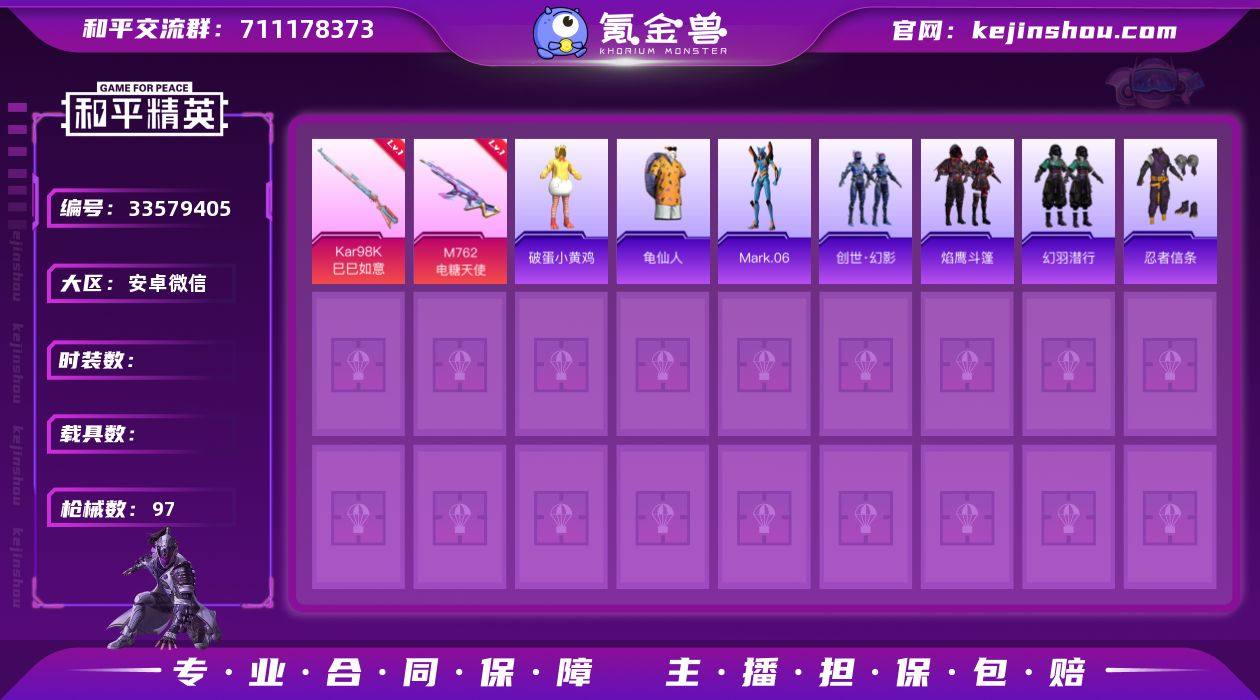 hs65564 安卓微信-8王牌印记-1粉装-4特效枪-25599热力值-69套装-97枪皮-1卓越印记
