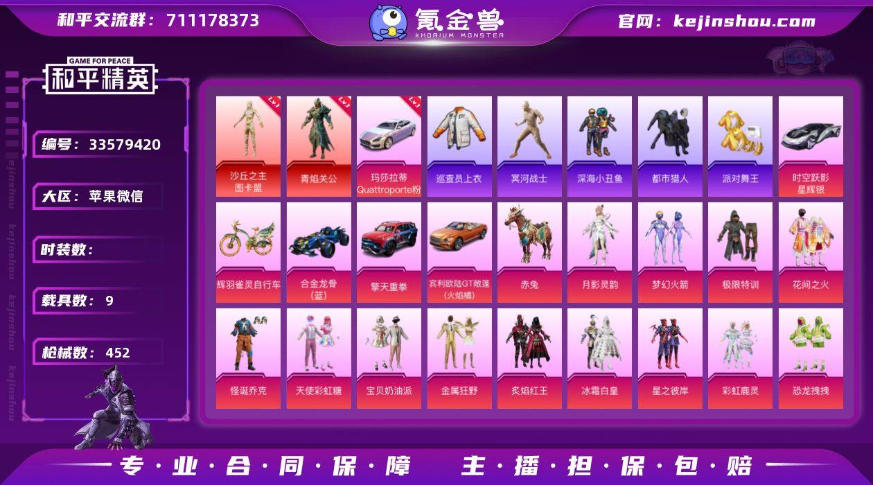hs68029 苹果微信-19王牌印记-有战神框-2红装-29粉装-25特效枪-9载具-热力值-360套装-452枪皮-15卓越印记-15传奇印记 【2红装】角色-青焰关公/1级,沙丘之主-图卡盟/6级 【29粉装】套装-恐龙拽拽,角色-月影灵韵,角色-辉云木星,套装-寒光使者,套装-金属狂野,套装-彩虹鹿灵,套装-炙焰红王,角色-白兰星,套装-暗夜玫瑰,套装-星之彼岸,角色-绝对恒星,套装-梦幻火箭,角色-初号机款机体服,套装-太空嘟嘟,角色-精灵菇菇,角色-守护天翼,套装-天使彩虹糖,人物-小舞·灵珑,角色-荧海星豚,套装-宝贝奶油派,套装-花间之火,套装-怪诞乔克,套装-极限特训,套装-第五大道,角色-狂魅哈莉,套装-冰霜白皇,角色-圣堂之誓,套装-仲夏莫吉托,角色-光极星 【25特效枪】DP-28-豹影疾电/5级,燃烧瓶-薄荷可可/6级,Kar98K-巳巳如意/5级,镰刀-幽影之判/7级,M249-绝对恒星/5级,UMP45-恐龙拽拽/5级,GROZA-旋转彩虹/5级,M416-墨龙九天/1级,Mk14-福马献瑞/1级,P90-能量风暴/5级,AKM-炫紫旋律/2级,UZI-畅跳缤纷/5级,P90-沙丘之主/1级,平底锅-仲夏莫吉托/4级,SCAR-L-童趣迷兔/5级,Mk14-辉云木星/5级,M416-至情至圣/9级,Vector-飒粉甜心/5级,AKM-甜心宝贝/5级,M416-灵猫魔法师/1级,破片手榴弹-粉粉猫爪/6级,AUG-星之彼...