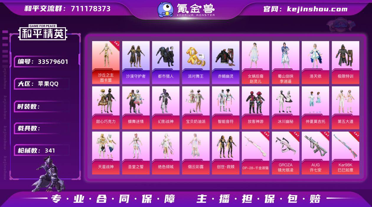 hs66920 苹果手Q-17王牌印记-1红装-21粉装-20特效枪-热力值-247套装-341枪皮-7卓越印记-2传奇印记 【1红装】沙丘之主-图卡盟/3级 【21粉装】角色-绝色倾城,角色-圣堂之誓,角色-绝对恒星,角色-罪夜之冕,套装-宝贝奶油派,套装-天星战神,角色-烟云彩露,套装-第五大道,套装-仲夏莫吉托,女娲后裔-赵灵儿,套装-蝶舞迷情,套装-智能音符,套装-幻影战神,套装-甜心巧克力,套装-创世·救赎,角色-智耀战神,角色-千金淑猫,套装-放客神游,套装-冰川幽秘,套装-极限特训,角色-洛天依 【20特效枪】M417-第五大道/4级,GROZA-镜光银凌/5级,M416-五爪金龙/7级,AUG-许七安/7级,M249-猪猪侠/4级,SCAR-L-纯梦嫁纱/7级,燃烧瓶-天降桃花/6级,M24-镜域双华/3级,DP-28-豹影疾电/5级,DP-28-千金淑猫/4级,M416-墨龙九天/3级,UMP45-萌骑冒险/5级,P90-沙丘之主/3级,Kar98K-巳巳如意/5级,AKM-绿萝繁花/5级,Mk14-精灵梦叶罗丽/7级,破片手榴弹-招财进宝/6级,Mk14-福马献瑞/3级,AKS-74U-森灵之息/5级,DP-28-暗夜鎏金/1级 【13稀有紫装】都市猎人,Mark.06,派对舞王,赤蝎幽灵,沙漠守护者,暗影哥特,浪漫天命,迅捷狂鲨,小丑鱼,龟仙人,许七安,怀庆长公主,临安公主 【247稀有时装】图卡盟/3级,甜心巧克力,放客神游,赵灵儿...