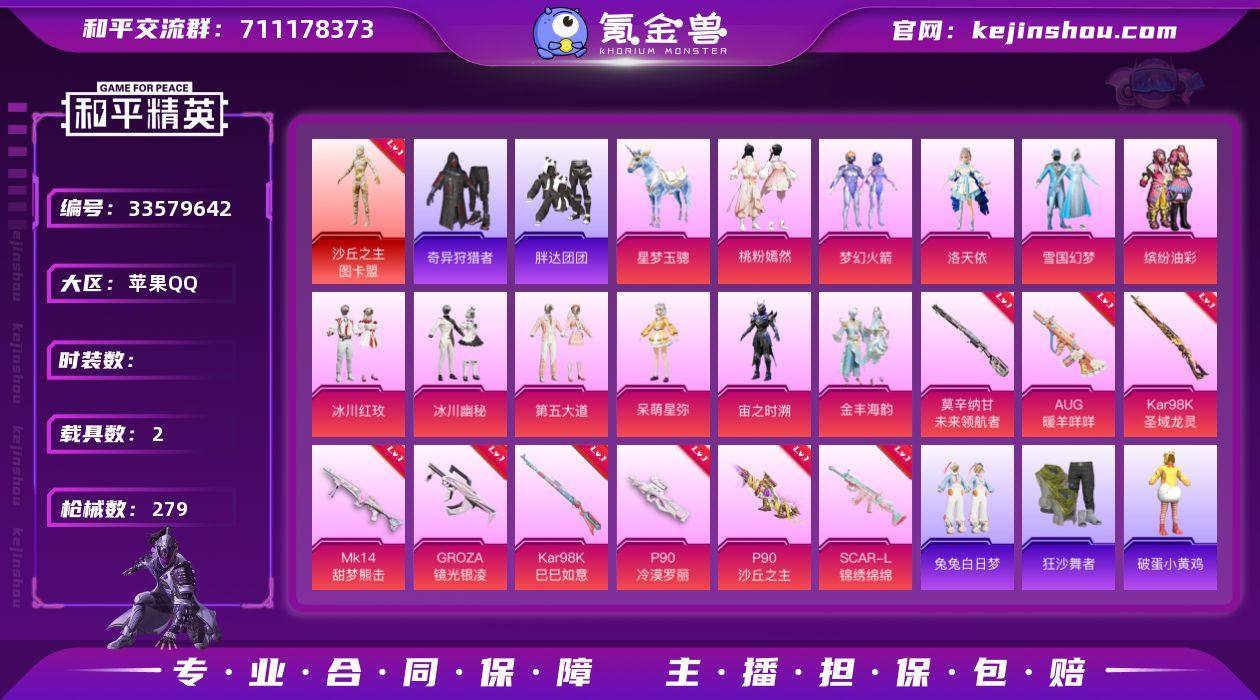 hs68212 苹果手Q-17王牌印记-1红装-13粉装-12特效枪-2载具-94101热力值-204套装-279枪皮-7卓越印记-2传奇印记 【1红装】沙丘之主-图卡盟/2级 【13粉装】套装-缤纷油彩,套装-第五大道,角色-呆萌星弥,套装-梦幻火箭,套装-冰川幽秘,套装-雪国幻梦,套装-冰川红玫,角色-千金淑猫,角色-宙之时溯,套装-桃粉嫣然,角色-冷漠罗丽,角色-洛天依,套装-金丰海韵 【12特效枪】P90-冷漠罗丽/7级,12-雪月幻音/4级,DP-28-豹影疾电/5级,Mk14-甜梦熊击/5级,SCAR-L-锦绣绵绵/5级,Kar98K-圣域龙灵/2级,莫辛纳甘-未来领航者/4级,AKM-暮色玫影/3级,AUG-暖羊咩咩/5级,Kar98K-巳巳如意/5级,GROZA-镜光银凌/5级,P90-沙丘之主/1级 【8稀有紫装】Mark.06,8号机,奇异狩猎者,暗影哥特,浪漫天命,雪山精英,胖达团团,龟仙人 【2稀有载具】暮色幽蹄,星梦玉骢 【1僚机】僚机-圣域龙宝 【204稀有时装】图卡盟/2级,雪国幻梦,梦幻火箭,缤纷油彩,第五大道,洛天依,千金淑猫,桃粉嫣然,冷漠罗丽,宙之时溯,冰川幽秘,冰川红玫,金丰海韵,呆萌星弥,胖达团团,浪漫天命,奇异狩猎者,龟仙人,Mark.06,雪山精英,暗影哥特,8号机,兔兔白日梦,狂沙舞者,萌趣咩咩,龙魂突击队,小熊娃娃,异域银装,纯白跃动,都市丽猫,摩登魅猫,白糯汤圆,绒宝...