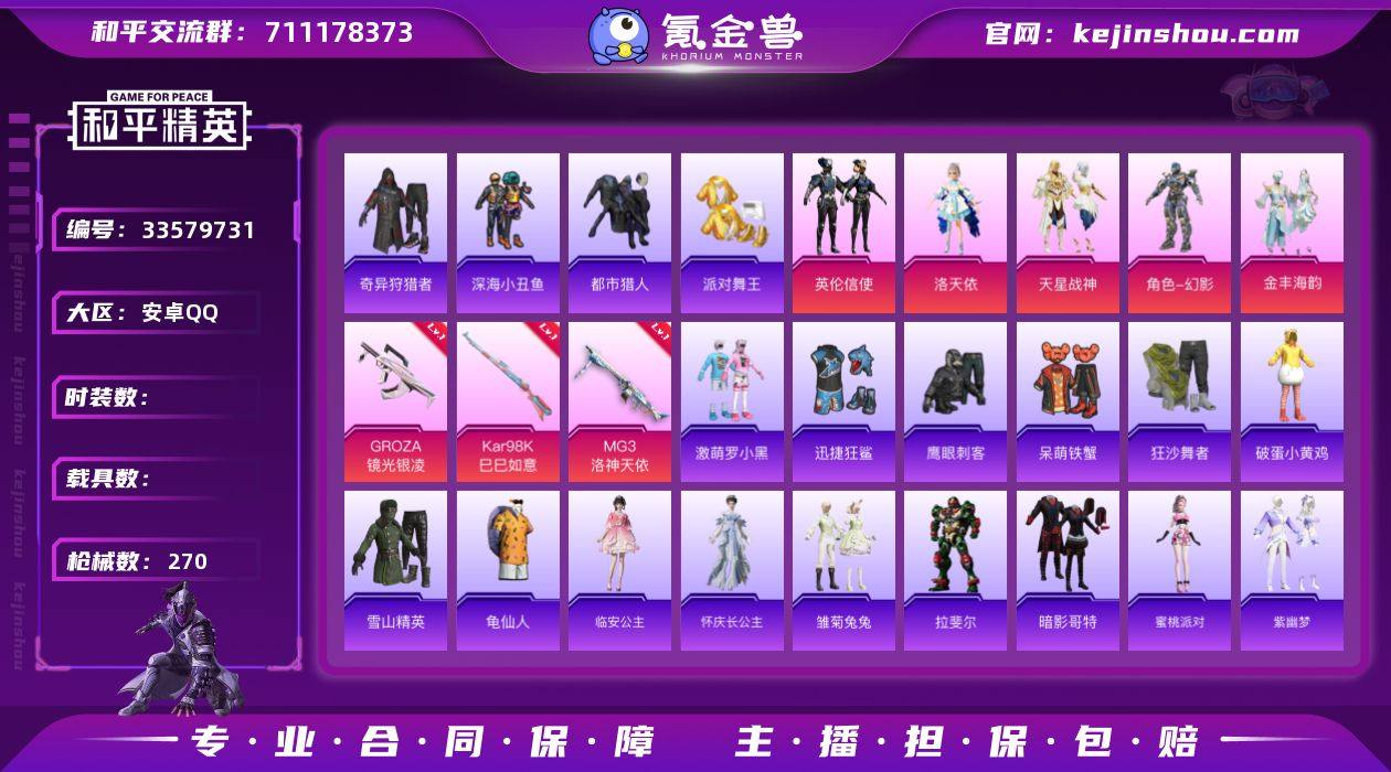 hs67480安卓手Q-13王牌印记-6粉装-9特效枪-83057热力值-188套装-270枪皮-2卓越印记-1传奇印记 【6粉装】套装-金丰海韵,套装-星穹咏叹调,角色-洛天依,套装-英伦信使,角色-辉光之愿,套装-天星战神 【9特效枪】DP-28-豹影疾电/5级,信号枪-金乌曜日/4级,GROZA-镜光银凌/5级,AKS-74U-森灵之息/5级,ACE32-萌骑漫游/3级,Kar98K-巳巳如意/5级,MG3-洛神天依/6级,Vector-绯穹魔姬/7级,Mk14-福马献瑞/5级 【12稀有紫装】都市猎人,派对舞王,奇异狩猎者,暗影哥特,深海小丑鱼,浪漫天命,雪山精英,迅捷狂鲨,小丑鱼,龟仙人,怀庆长公主,临安公主 【186稀有时装】洛天依,辉光之愿,天星战神,星穹咏叹调,金丰海韵,英伦信使,迅捷龙虾,六号稻草人,都市猎人,浪漫天命,奇异狩猎者,龟仙人,雪山精英,暗影哥特,深海小丑鱼,小丑鱼,迅捷狂鲨,派对舞王,激萌罗小黑,狂沙舞者,萌趣咩咩,异域银装,白糯汤圆,街头风暴,星途旅人,蜜桃派对,冰河战士,鱼渊荷华,青团波波,拉斐尔,大橘大利,燕燕于飞,临安公主,战术大师,智谋强哥,怀庆长公主,雏菊兔兔,糖糖葫芦,晶辉守护,香桃花海,蝶变,瑰梦爱神,巳巳如意,粉恋花,元素星魂,午间小调,彩虹兔,琴音绮想,雪绒豹,画境星梦,星影赞美诗,朱霞炽焰,狂鲨锋刃,阳光菠萝,游乐,凌霄紫焰,...