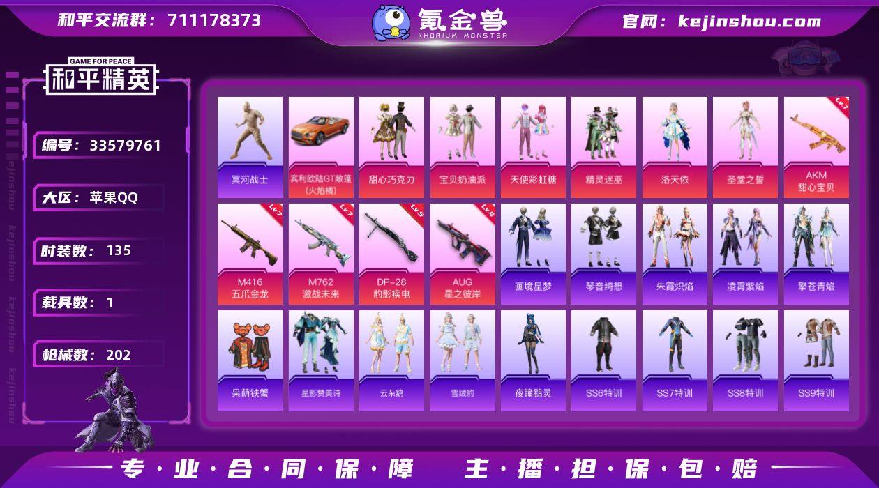 YZJ17181-不可二次-苹果Q-1稀有1载具6粉装8特效枪8热门【精品身法号 高印记 宾利欧陆GT 木乃伊 巧克力三姐妹 洛天依 沁蓝冰爽 超人强 3款满级猛男特效枪 1级暮色之舞飞行器 洛神天依背包头盔 4款飞行器】135套装202枪皮 65328热力值 16印记 历史超级王牌16星 【1稀有】 木乃伊 【1载具】 宾利欧陆GT火焰橘 【6粉装】 圣堂之誓 宝贝奶油派 天使彩虹糖 甜心巧克力 洛天依 精灵迷巫 【8特效枪】 M416-五爪金龙 (7级) AKM-甜心宝贝 (7级) AKS-74U-森灵之息 (5级) DP-28-豹影疾电 (5级) M762-激战未来 (7级) AUG-星之彼岸 (4级) Mk14-福马献瑞 (5级) ACE32-萌骑漫游 (3级) 【8热门】 呆萌铁蟹 团圆交子 瑞龙福将 冰爽海盐 破蛋小黄鸡 黑色刀锋 赛博空间 M762-瑞龙福将 【2飞行器】 激战未来飞行器 齐天大圣飞行器 【1头盔】 甜心宝贝头盔 【1背包】 甜心宝贝背包 营地ID:596634926
