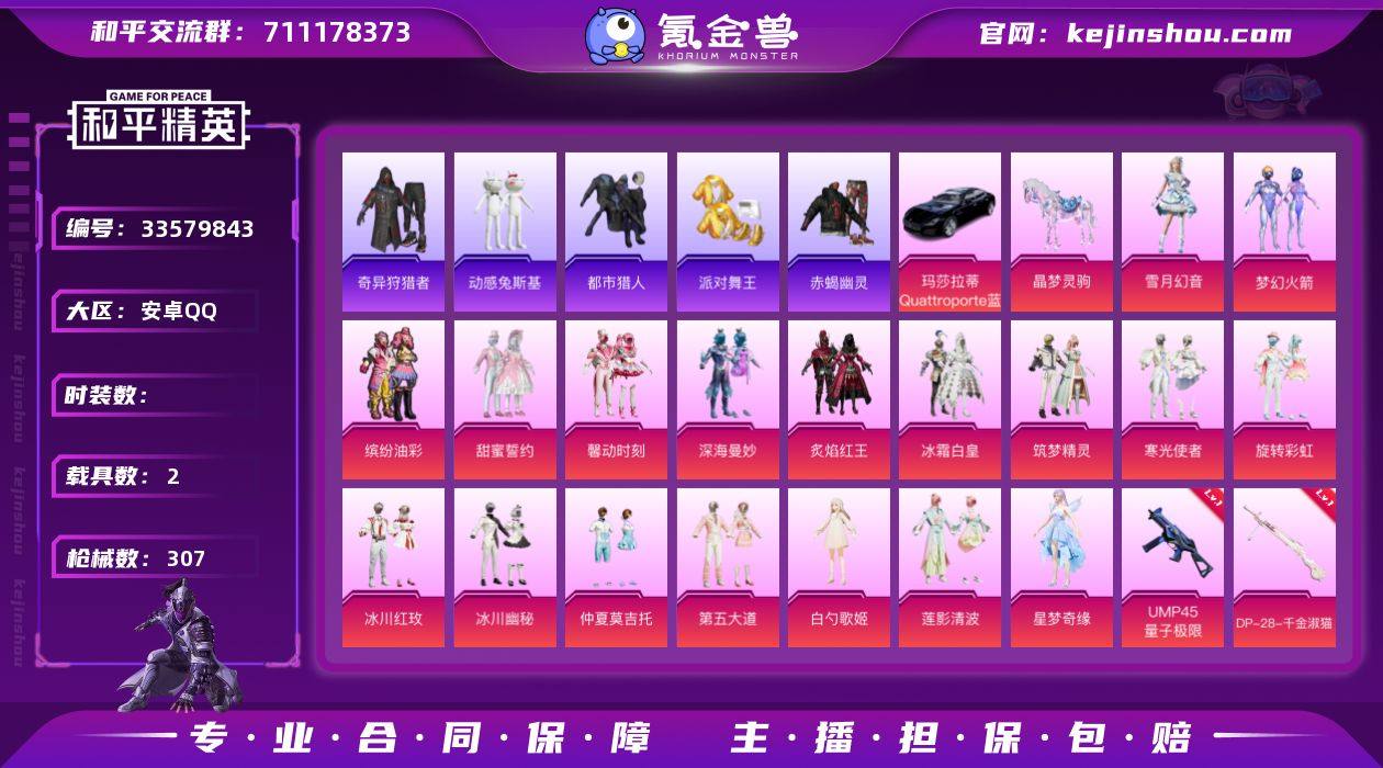 hs66561 安卓手Q-14王牌印记-20粉装-12特效枪-2载具-热力值-232套装-307枪皮-4卓越印记-1传奇印记 【20粉装】套装-碧蓝澄空,套装-炙焰红王,套装-馨动时刻,套装-冰川幽秘,套装-寒光使者,套装-缤纷油彩,角色-白勺歌姬,套装-筑梦精灵,套装-第五大道,套装-深海曼妙,套装-冰霜白皇,角色-星梦奇缘,套装-冰川红玫,套装-雪月幻音,套装-莲影清波,角色-罪夜之冕,套装-旋转彩虹,套装-甜蜜誓约,套装-梦幻火箭,套装-仲夏莫吉托 【12特效枪】M417-第五大道/7级,GROZA-镜光银凌/5级,M249-彩虹甜喵/7级,Kar98K-巳巳如意/5级,DP-28-千金淑猫/5级,UMP45-量子极限/5级,AA12-G-萌骑幻想/5级,DP-28-豹影疾电/5级,M416-五爪金龙/7级,Mk14-福马献瑞/5级,SCAR-L-锦绣绵绵/5级,M762-青锋波束/5级 【8稀有紫装】都市猎人,派对舞王,赤蝎幽灵,奇异狩猎者,浪漫天命,迅捷狂鲨,小丑鱼,龟仙人 【2稀有载具】玛莎拉蒂Quattroporte(夜幕蓝),晶梦灵驹 【229稀有时装】梦幻火箭,缤纷油彩,第五大道,白勺歌姬,馨动时刻,罪夜之冕,筑梦精灵,甜蜜誓约,深海曼妙,寒光使者,莲影清波,冰川幽秘,冰川红玫,旋转彩虹,星梦奇缘,冰霜白皇,炙焰红王,雪月幻音,碧蓝澄空,仲夏莫吉托,STE追光队服,都市猎人,浪漫天命,奇异狩猎者,龟仙人...