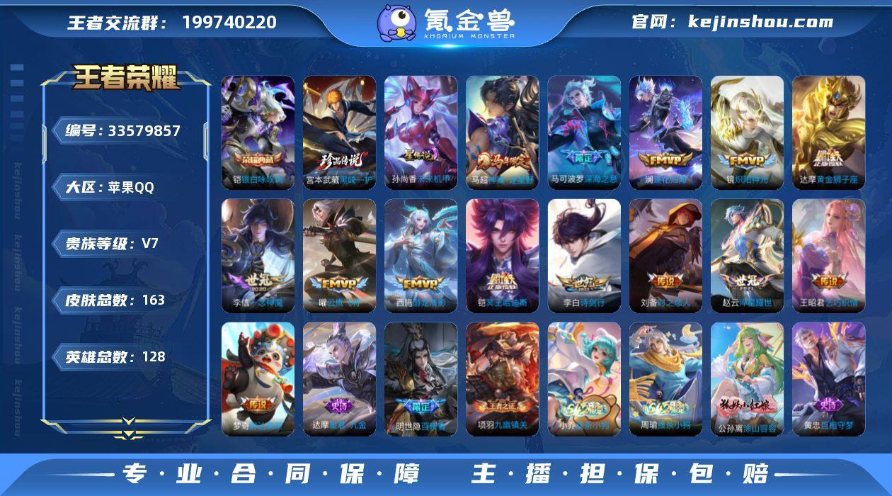 苹果Q-V7-最强王者段位-128英雄-163皮肤-1典藏皮肤-1珍品传说-14传说-47史诗 【英雄全皮】:孙权全皮,敖隐全皮 【荣耀典藏】:铠银白咏叹调 【珍品传说】:宫本武藏黑崎一护 【传说皮肤】:马超神骥逐星野,铠冥王哈迪斯,澜逐花归海,李白诗剑行,马可波罗深海之息,赵云淬星耀世,王昭君乞巧织情,西施游龙清影,镜炽阳神光,曜云鹰飞将,李信一念神魔,刘备时之恋人,达摩黄金狮子座,梦奇胖达荣荣 【限定皮肤】:铠冥王哈迪斯,暃埋骨钱,姜子牙天穹之誓,狄仁杰阴阳师,赵云皇家上将,元歌无心,马可波罗深海之息,狄仁杰魔术师,项羽海滩派对,孙悟空大圣娶亲,后羿如梦令,李元芳银河之约,李元芳云中旅人,裴擒虎擒涛扼浪,鲁班大师探海日志,桑启海盐诗旅,艾琳流音漫舞,阿古朵江河有灵,张良古海寻踪,高渐离燃音魔法,妲己灵卜魔法,鬼谷子天穹祈灯,姬小满妄想食味,安琪拉乘龙聚宝船,百里玄策超元猎域,沈梦溪龙舞盛年,刘邦剑破天穹,程咬金群星魔术团,周瑜熔金海岸 【年限皮肤】:安琪拉乘龙聚宝船 【赛季限定】:李元芳云中旅人,桑启海盐诗旅,裴擒虎擒涛扼浪,鲁班大师探海日志,张良古海寻踪,鬼谷子天穹祈灯,刘邦剑破天穹,姜子牙天穹之誓,东皇太一...