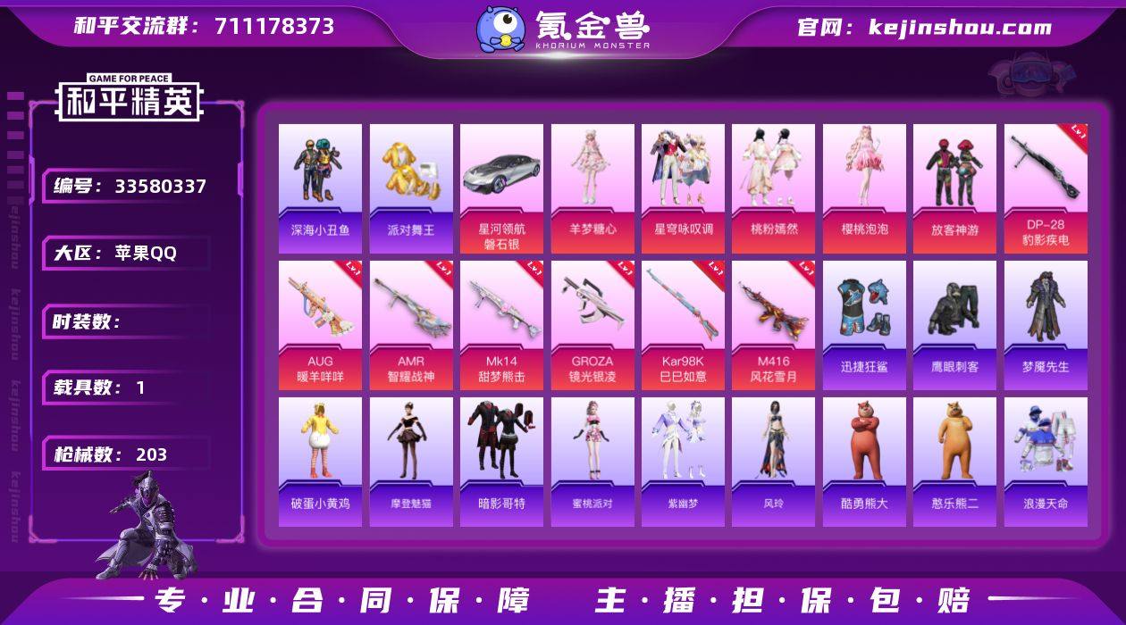 YZJ16807 无二次 苹果Q-3稀有1载具5粉装12特效枪10热门 身法女号 地铁满天赋 泡泡 桃粉嫣然 糖心 LED眼罩 金鞋 阳光菠萝 纯白悦动 深海小丑鱼 aug咩咩满级 满级风花雪月 150套装203枪皮 62498热力值 10印记 历史超级王牌15星 【3稀有】 浪漫天命 派对舞王 派对舞王(金靴子) 【1载具】 星河领航(磐石银) 【5粉装】 桃粉嫣然 樱桃泡泡 星穹咏叹调 羊梦糖心 放客神游 【12特效枪】 AKS-74U-森灵之息 (5级) Kar98K-巳巳如意 (5级) DP-28-豹影疾电 (5级) AUG-暖羊咩咩 (5级) Mk14-甜梦熊击 (5级) AMR-智耀战神 (5级) GROZA-镜光银凌 (5级) 汤姆逊-热量炸弹 (5级) M416-风花雪月 (7级) Mk14-福马献瑞 (3级) UMP45-萌骑冒险 (2级) ACE32-萌骑漫游 (5级) 【10热门】 梦魇先生 鹰眼刺客 迅捷狂鲨 深海小丑鱼 NV战队服 暗影哥特 团圆交子 漫步者 破蛋小黄鸡 风华少年志 【1头盔】 深海小丑鱼头盔 【1背包】 深海小丑鱼背包 营地ID:788728176