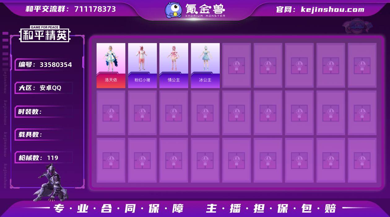 HX9102【精品女号-洛天依-1粉装3特效枪5角色-地铁48点满天赋-角色-紫俏灵猫 角色-乐音 角色-无面战甲 角色-情公主 角色-冰公主】安卓Q-1粉装3特效枪1热门64套装119枪皮 29153热力值 2印记 历史超级王牌8星 【1粉装】 洛天依 【3特效枪】 AKS-74U-森灵之息 (5级) Kar98K-巳巳如意 (5级) DP-28-豹影疾电 (5级) 【1热门】角色-紫俏灵猫 角色-乐音 角色-无面战甲 角色-情公主 角色-冰公主 粉红小猪安卓Q区-1粉装-3特效枪-29153热力值-2王牌印记-64套装-119枪皮【优质套装】: 洛天依【特效枪等级】:Kar98K-巳巳如意(五级- Kar98K-巳巳如意)【优质武器皮肤】: Kar98K-巳巳如意【稀有武器皮肤】: DBS-乌木金纹 S1897-精灵梦叶罗丽 SCAR-L-海盐豹豹 GROZA-海盐豹豹 Kar98K-巳巳如意 野牛-雏菊兔兔 Mk14-冰河战士 平底锅-雏菊兔兔 M762-雏菊兔兔 Mini14-雏菊兔兔 R1895-雏菊兔兔 UZI-冰河战士 M16A4-冰河战士 20-H-乌木金纹 蜜獾-乌木金纹 PKM-啾咪啾咪 M416-红色方程式 M416-蓝色火焰 M416-暗星紫秘 AKM-破晓战魂 AKM-灼热熔岩 SCAR-L-龙宫之主 M16A4-红色方程式 M16A4-幻世战舞者 AUG-耀粉歌者 AUG-天降萌叽 QBZ-洛神天依 QBZ-彩虹符号 M762-橘柚倾心 M762-天降萌叽 Mk47-洛神...
