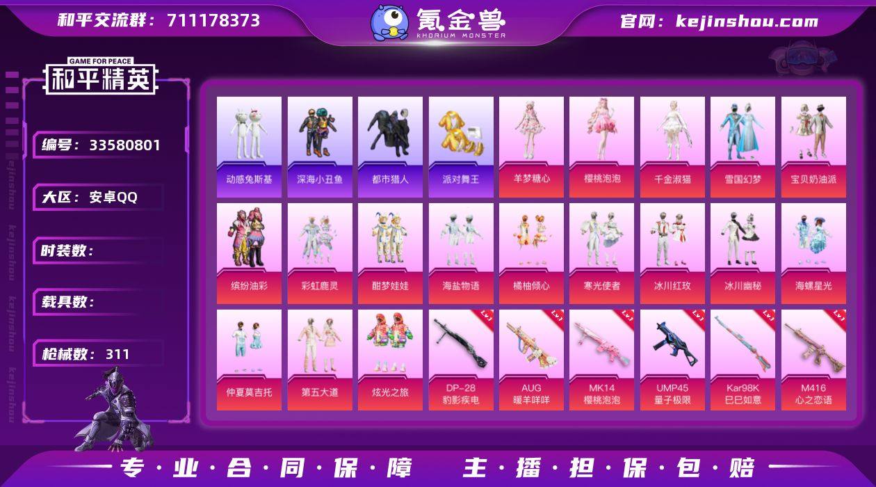 【小姐姐号!都市 金鞋 雪国 猪妹 第五大道 满级心之恋语 双马尾 哥特 满地铁天赋】c29217-【可二次】【因赛季更新游戏段付以上号为准!】 安卓Q-5稀有18粉装12特效枪22热门220套装311枪皮 16印记 历史超级王牌16星 【5稀有】 AKM-缤纷海域 都市猎人 浪漫天命 派对舞王 派对舞王(金靴子) 【18粉装】 雪国幻梦 宝贝奶油派 千金淑猫 樱桃泡泡 炫光之旅 羊梦糖心 绝对恒星 酣梦娃娃 缤纷油彩 仲夏莫吉托 橘柚倾心 第五大道 冰川幽秘 海螺星光 冰川红玫 海盐物语 彩虹鹿灵 寒光使者 【12特效枪】 SCAR-L-锦绣绵绵 (5级) M416-心之恋语 (7级) Kar98K-巳巳如意 (5级) DP-28-豹影疾电 (5级) AUG-暖羊咩咩 (5级) UMP45-量子极限 (5级) Mk14-樱桃泡泡 (4级) AKM-梦之光华 (7级) M249-绝对恒星 (7级) MG3-洛神天依 (7级) UMP45-萌骑冒险 (5级) 平底锅-仲夏莫吉托 (7级) 【22热门】 小丑鱼 龟仙人 雪山精英 动感兔斯基 潮萌小黄鸭 晶辉守护 呆萌铁蟹 鹰眼刺客 激萌罗小黑 迅捷狂鲨 深海小丑鱼 怪笑疯兔 暗影哥特 团圆交子 瑞龙福将 漫步者 破蛋小黄鸡 极速红龙 弄潮海豚 M762-瑞龙福将 47-林间仙鹿 GROZA-林间仙鹿 【3飞行器】 齐天大圣飞行器 纯梦嫁纱飞行翼 太空嘟嘟飞行器 【4...
