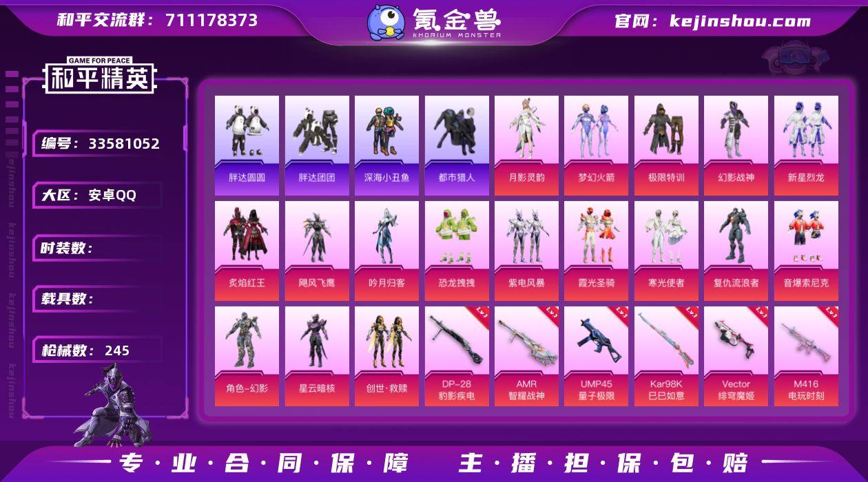 YZJ15753 可二次 安卓Q-【精品身法女号 满级至情至圣 新火箭少女 都市 熊熊 月影 小白龙 恐龙拽拽 寒光使者 幻影战神 极限特训 唐三 团团圆圆 深海小丑鱼 小丑鱼 小黄鸭 银尘 贝斯之夜 蓝螳螂 菠萝 摩登魅猫 魔性柴柴 暖阳柴柴 红眼罩 浪漫天命】3稀有18粉装17特效枪18热门172套装245枪皮 76964热力值 5印记 历史传奇王牌11星 【3稀有】 AKM-百万伏特 都市猎人 浪漫天命 【18粉装】 梦幻火箭 虹云熊熊 月影灵韵 创世救赎 幻影战神 星云暗核 极限特训 新星烈龙 炙焰红王 霞光圣骑 音爆索尼克 飓风飞鹰 紫电风暴 恐龙拽拽 吟月归客 寒光使者 复仇流浪者 【17特效枪】 SCAR-L-锦绣绵绵 (5级) M416-心之恋语 (1级) M416-电玩时刻 (5级) AKS-74U-森灵之息 (4级) Kar98K-巳巳如意 (5级) Vector-绯穹魔姬 (4级) M762-甜蜜誓约 (5级) DP-28-豹影疾电 (5级) UMP45-量子极限 (5级) AMR-智耀战神 (5级) AUG-星之彼岸 (5级) M416-至情至圣 (9级) AKM-梦之光华 (5级) M416-风花雪月 (6级) Mk14-福马献瑞 (5级) AA12-G-萌骑幻想 (2级) ACE32-萌骑漫游 (2级) 【18热门】 Mark.06 小丑鱼 龟仙人 雪山精英 潮萌小黄鸭 呆萌铁蟹 鹰眼刺客 激萌罗小黑 深海小丑鱼 浪漫波比 胖达圆圆 胖达团团 TT战...