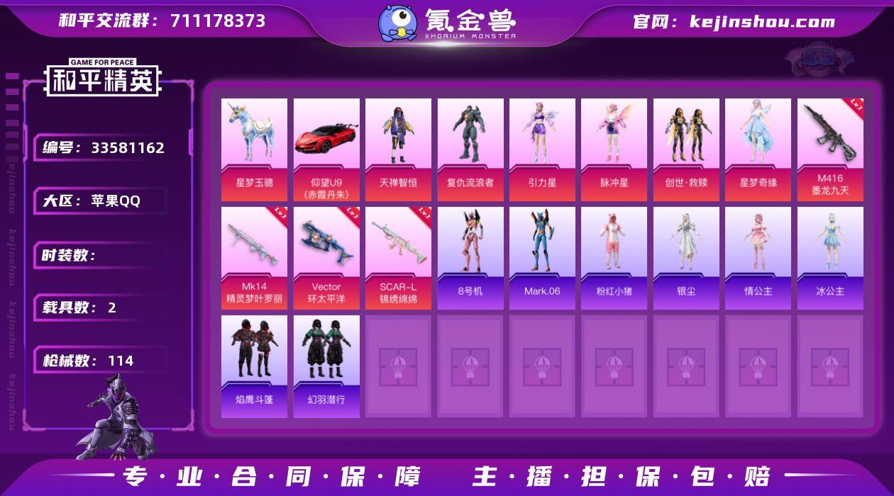 【稀有枪皮】镰刀-幽影之判,AUG-暖羊咩咩,蜜獾-荧海星豚,GROZA-镜光银凌,M416电玩时刻,Mk14精灵梦叶罗丽,M416墨龙九天,UMP45量子极限,Kar98K-巳巳如意,DP-28-豹影疾电,Vector环太平洋,SCAR-L-锦绣绵绵