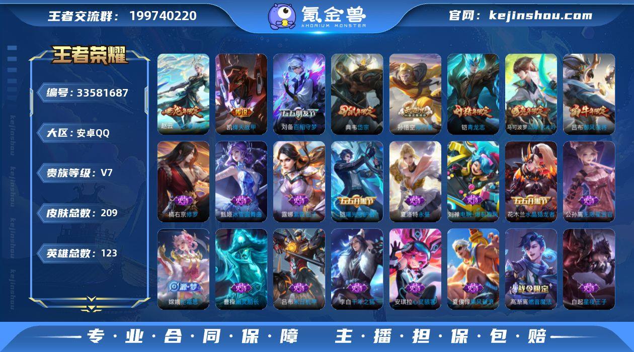 2184761-【 209皮3传说乘龙铭钟鼎 绛天战甲 孙行者】:安卓Q-V7-至尊星耀IV段位-123英雄-209皮肤-0典藏-0无双-0珍品传说-3传说-63史诗 【内测皮肤】:高渐离玩趣恶龙,狂铁特工战影 【传说皮肤】:铠绛天战甲,赵云乘龙铭钟鼎,桑启鸣野蒿 【限定皮肤】:姜子牙天穹之誓,狄仁杰阴阳师,赵云皇家上将,高渐离玩趣恶龙,扁鹊奇幻香踪,吕布御风骁将,元歌无心,典韦岱宗,马可波罗山海玄木吟,狄仁杰魔术师,项羽海滩派对,兰陵王金庭之子,孙悟空美猴王,孙悟空孙行者,刘备百相守梦,李元芳银河之约,李元芳云中旅人,杨戬潮玩骑兵,鬼谷子五谷丰年,铠青龙志,沈梦溪大漠名商,裴擒虎擒涛扼浪,云中君纤云弄巧,上官婉儿梁祝,嫦娥拒霜思,嫦娥暖冬兔眠,西施玲珑珍味,鲁班大师探海日志,桑启海盐诗旅,暃星界游侠,戈娅驭风魔法,艾琳流音漫舞,司空震地狱燃心,阿古朵江河有灵,张良古海寻踪,蒙犽百解令,高渐离燃音魔法,妲己灵卜魔法,鬼谷子天穹祈灯,赵云乘龙铭钟鼎,鲁班七号蔬乡物语,李元芳蔬乡物语,刘邦剑破天穹,镜青焰无极,项羽苍威无极,周瑜熔金海岸 【年限皮肤】:铠青龙志,孙悟空美猴王,吕布御风骁将,典韦岱宗,马可波罗山海玄木吟,赵云乘龙铭钟鼎...