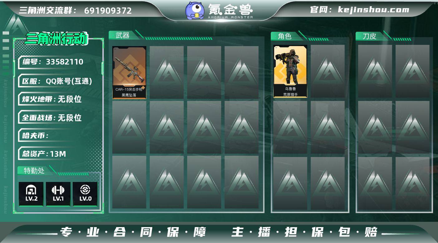 ZMSJ968【仓库价值13.6M 哈夫币682 17发AWM子弹 干员皮肤 荒原猎手 不羁人生】无二次不包【总资产(M)】13.6【哈夫币】0.68【行动等级】60【烽火地带段位】铂金【干员皮肤】乌鲁鲁-荒原猎手蛊-不羁人生【近战武器】黑鹰【枪皮】M4A1突击步枪-粉色涂装 AKM突击步枪-锦绣 QBZ95-1突击步枪-高雅黑 QBZ95-1突击步枪-海浪 K416突击步枪-重击 K416突击步枪-一帆风顺 K416突击步枪-腊梅 M16A4突击步枪-高雅黑 AUG突击步枪-浅蓝涂装 AUG突击步枪-悠然茶歇 M7战斗步枪-黑巧甜心 M7战斗步枪-重击 SG552突击步枪-海浪 SG552突击步枪-狂欢 SG552突击步枪-马年新春 SG552突击步枪-贴花艺术 SG552突击步枪-深海恐惧 SG552突击步枪-哈夫克警备 AK-12突击步枪-马年新春 SCAR-H战斗步枪-数码迷彩 G3战斗步枪-高雅黑 G3战斗步枪-猛禽 PTR-32突击步枪-典雅 CAR-15突击步枪-狂欢 CAR-15突击步枪-来财 腾龙突击步枪-万金泪冠 K437突击步枪-丛影谍踪 K437突击步枪-锦绣 KC17突击步枪-来财 47突击步枪-悠然茶歇 MP5冲锋枪-海色 MP5冲锋枪-黄蜂 MP5冲锋枪-典雅 MP5冲锋枪-弄臣 P90冲锋枪-黑巧甜心 UZI冲锋枪-狂欢 UZI冲锋枪-重击 UZI冲锋枪-一帆风顺 UZI冲锋枪-悠然茶歇 野牛冲锋枪-高雅黑 SMG-45冲锋枪...