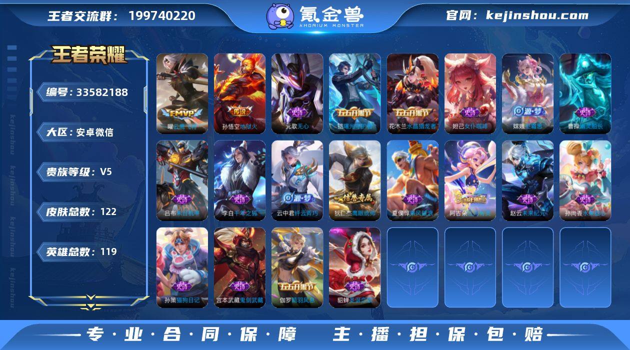 [18828536]V5 4传说 119英雄 122皮肤 可二次 可修改实名 男号 有社交场景限制