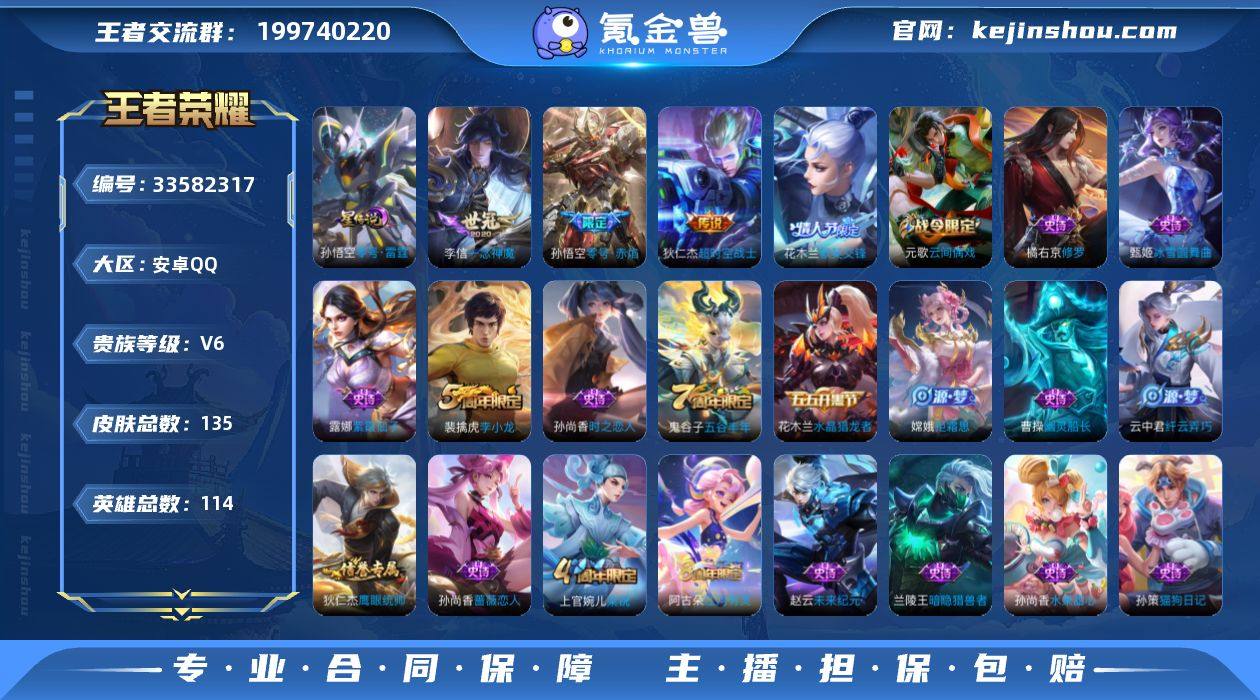 W15409,,可立即换绑无需挂单养号,,,铭文满级,,传说3,,,星传说1,,按键2,,夺宝44,,安卓Q-V6-永恒钻石III段位-114英雄-135皮肤-3传说-34史诗 【传说皮肤】:孙悟空零号赤焰,李信一念神魔,狄仁杰超时空战士 【限定皮肤】:狄仁杰阴阳师,赵云皇家上将,孙尚香蔷薇恋人,庄周高山流水,元歌云间偶戏,狄仁杰魔术师,狄仁杰万华元夜,达摩沙漠行僧,项羽海滩派对,老夫子醍醐杖,程咬金演武夺筹,兰陵王金庭之子,花木兰默契交锋,亚瑟潮玩骑士王,孙悟空零号赤焰,李元芳云中旅人,钟馗驱傩正仪,干将莫邪胡桃夹子,雅典娜单词大作战,鬼谷子原初探秘者,鬼谷子五谷丰年,苏烈千军破阵,沈梦溪大漠名商,明世隐疑决卦,裴擒虎李小龙,裴擒虎擒涛扼浪,云中君纤云弄巧,上官婉儿梁祝,嫦娥拒霜思,蒙犽狂想玩偶喵,鲁班大师探海日志,桑启海盐诗旅,阿古朵江河有灵,张良古海寻踪,鬼谷子天穹祈灯,刘邦剑破天穹 【赛季限定】:明世隐疑决卦,老夫子醍醐杖,鬼谷子原初探秘者,狄仁杰万华元夜,程咬金演武夺筹,钟馗驱傩正仪,苏烈千军破阵,达摩沙漠行僧,兰陵王金庭之子,沈梦溪大漠名商,李元芳云中旅人,桑启海盐诗旅,裴擒虎擒涛扼浪,鲁班大师探海日志,张...