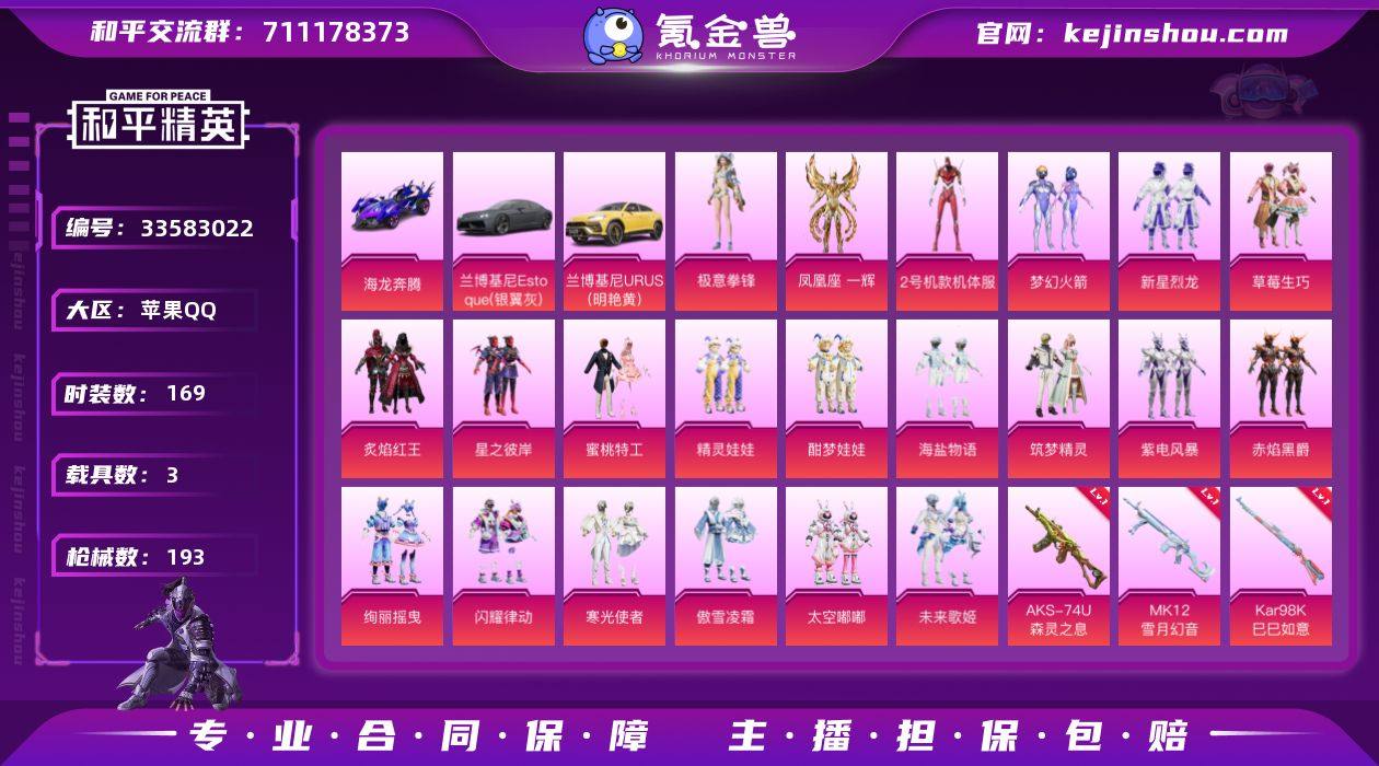 【8级M4至情至圣红螳螂星河浪客小熊背包21粉装9特效枪4载具身法素材号 秒换绑不用等】 苹果Q区-75461热力值-9印记-169套装-193枪皮 【4载具】 兰博轿车灰色 兰博SUV黄色 海龙奔腾 萌兔起飞僚机【3稀有】 萌熊伴侣背包(小熊背包) 奇异狩猎者 星河浪客【21粉装】 2号机款机体服(红螳螂) 角色-2号机款机体服 梦幻火箭 蜜桃特工 草莓生巧 傲雪凌霜 星之彼岸 寒光使者 太空嘟嘟 酣梦娃娃 精灵娃娃 筑梦精灵 闪耀律动 绚丽摇曳 极意拳锋 新星烈龙 炙焰红王 紫电风暴 赤焰黑爵 海盐物语 未来歌姬 角色-凤凰座 一辉【9特效枪】 M416-至情至圣(8级) AKS-74U-森灵之息(5级) GROZA-焦糖拿铁(5级) SCAR-L-青春物语(5级) UMP45-相思残雪(4级) UZI-筑梦精灵(5级) M24-翩跹演武(2级) MK12-雪月幻音(1级) Kar98K-巳巳如意(4级)【151热门】 浪漫天命 小丑鱼 军刀雅典娜 英勇保护者 暗影哥特(红眼罩) 团圆交子 瑞龙福将 纯白誓言 狂沙舞者 冰凉西瓜 缤纷焰火 白色伏地魔 SS27特训 SS26特训 SS25特训 SS24特训 SS23特训 SS22特训 Mini14-梦幻火箭 Kar98K-红伞翩翩 Kar98K-电玩视界 AKM-环太平洋 SCAR-L-玉兔迎春 Mk47-乌木金纹 SKS-糯团青竹 UZI-娇憨猪猪 M416-夜灯 S12K-垂柳戏鸭 DBS-彩虹符...