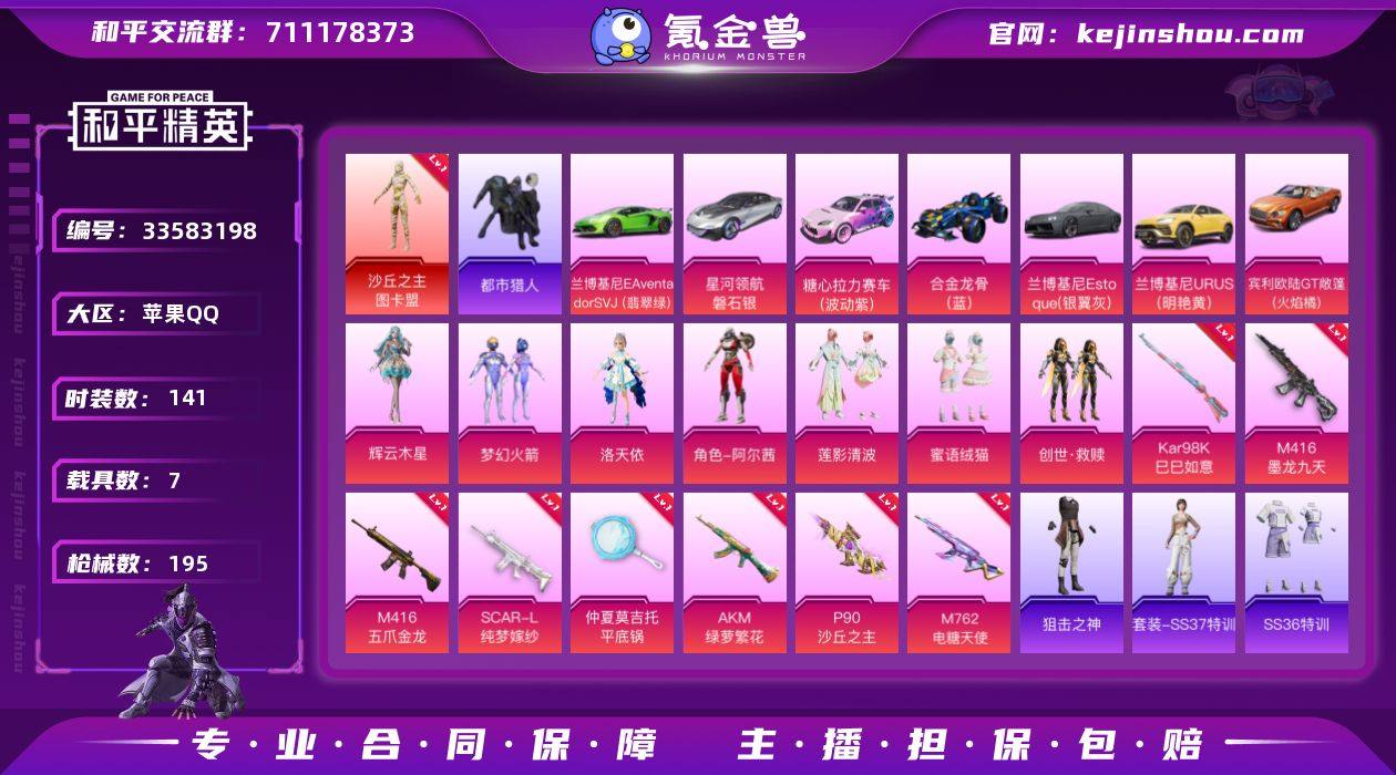 【4级图卡盟都市男神8载具8粉装8特效枪素材号 秒换绑不用等】 苹果Q区-74571热力值-141套装-195枪皮 【1红装】 沙丘之主-图卡盟(4级)【8载具】 兰博轿车灰色 兰博SUV黄色 兰博SVJ绿色 合金龙骨蓝色 僚机-萌酷奶龙 宾利欧陆GT敞篷(火焰橘) 糖心拉力赛车(波动紫) 星河领航(磐石银)【1稀有】 都市猎人【8粉装】 梦幻火箭 缤纷油彩(猪脸妹) 洛天依 蜜语绒猫 辉云木星 阿尔茜 莲影清波 创世·救赎【8特效枪】 M416-墨龙九天(3级) P90-沙丘之主(3级) M416-五爪金龙(6级) SCAR-L-纯梦嫁纱(5级) 平底锅-仲夏莫吉托(3级) AKM-绿萝繁花(5级) M762-电糖天使(5级) Kar98K-巳巳如意(5级)【179热门】 AG战队服 浪漫天命 鹰眼刺客 激萌罗小黑 暗影哥特(红眼罩) 极速红龙 狂沙舞者 白色伏地魔 SS6特训 SS27特训 SS26特训 SS25特训 SS24特训 SS23特训 SS22特训 Mini14-梦幻火箭 M762-乌木金纹 M762-暖熊萌萌 AKM-缤纷海域 M416-乌木金纹 SCAR-L-玉兔迎春 M762-天降萌叽 Mk47-乌木金纹 UZI-娇憨猪猪 M249-彩虹符号 MG3-幻世战舞者 呆萌铁蟹 M416-蓝色火焰 GROZA-春暖花开 长空猛禽 战地名士 虚音幻奏 夏日倾情 甜心亚梦 沙漠雄狮 燃烧卡路里 牛气冲天 霓虹街区 妙红点点 竞技勇士朋克 活力之心...