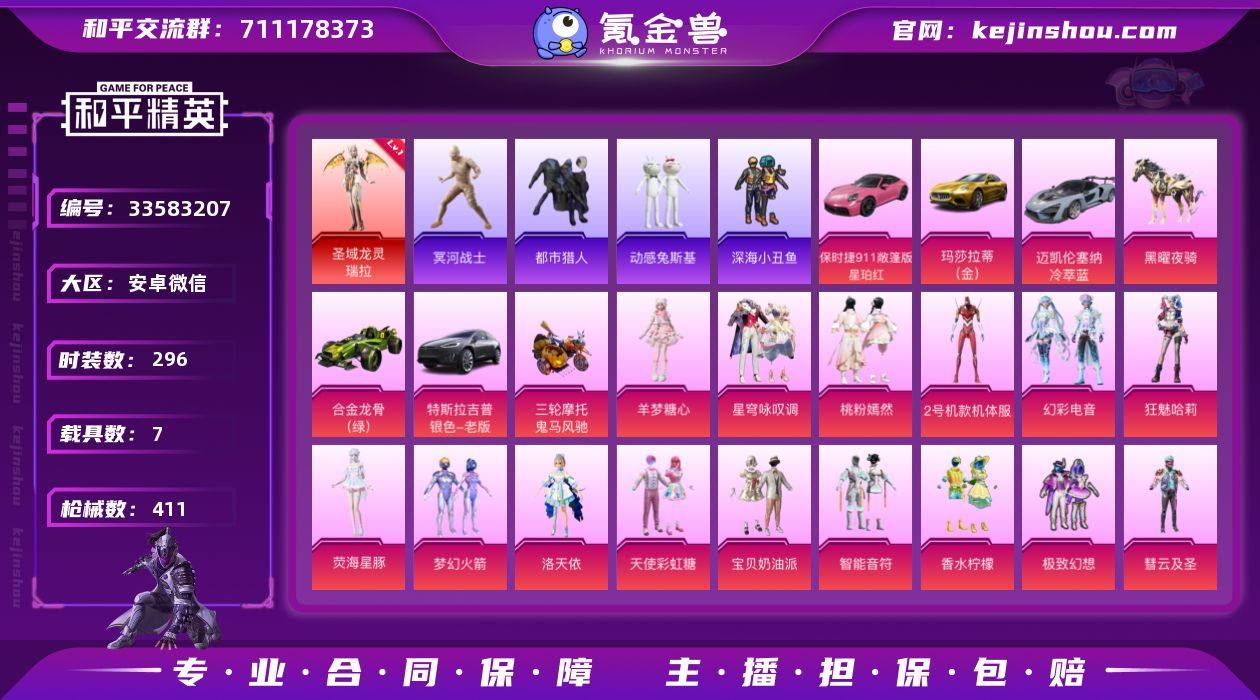 【3级红装战神框白木乃伊巡查衣红螳螂小丑女都市猎人24粉装25特效枪7载具素材号】 安卓V区-156131热力值-30印记-历史最高段位:无敌战神-296套装-411枪皮 【1红装】 圣域龙灵-瑞拉(3级)【8载具】 玛莎拉蒂金色 合金龙骨绿色 空客蔚蓝之翼僚机 特斯拉X银色 鬼马风驰 迈凯伦塞纳(冷萃蓝) 黑曜夜骑 保时捷911 敞篷版(星珀红)【4稀有】 巡查衣 木乃伊 都市猎人 奇异狩猎者【24粉装】 2号机款机体服(红螳螂) 角色-2号机款机体服 狂魅哈莉(小丑女) 梦幻火箭 宝贝奶油派 天使彩虹糖 缤纷油彩(猪脸妹) 洛天依 新星烈龙(小白龙) 极致幻想 香水柠檬 彩虹甜喵 向日葵 闲梦青缨 第五大道 呆萌星弥 妙趣可丽 智能音符 天禅智恒 彗云及圣 桃粉嫣然 星穹咏叹调 角色-荧海星豚 幻彩电音 角色-羊梦糖心【25特效枪】 Kar98K-圣域龙灵(3级) M416-灵猫魔法师(3级) Vector-最终圣卫者(3级) M416-五爪金龙(7级) M416-心之恋语(1级) AKM-炫紫旋律(7级) Kar98K-伏魔团(2级) UMP45-恐龙拽拽(5级) Mk14-闲梦青缨(7级) SCAR-L-梦幻火箭(7级) GROZA-香水柠檬(7级) M762-激战未来(5级) P90-能量风暴(7级) AUG-星之彼岸(7级) MG3-洛神天依(6级) M249-蓝莓炮弹(2级) ARX-无垠阁(4级) 汤姆逊-热量炸弹(5...