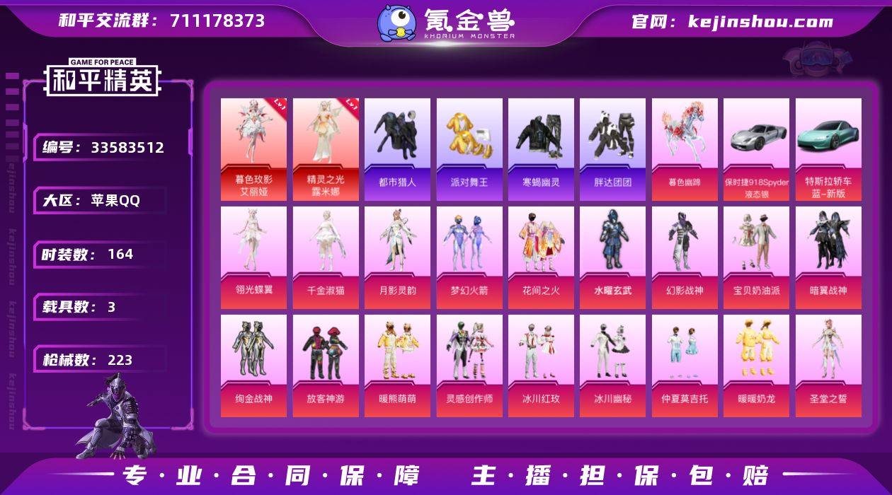 【公主女号2红装1个4级 战神框寒蝎金鞋天网都市猎人21粉装13特效枪3载具小熊背包 秒换绑不用等】 苹果Q区-87947热力值-历史最高段位:无敌战神-164套装-223枪皮 【2红装】 精灵之光-露米娜(4级) 暮色玫影-艾丽娅(1级)【3载具】 特斯拉R水滴蓝 暮色幽蹄 保时捷918 Spyder(液态银)【7稀有】 都市猎人 派对舞王(金靴子) 寒蝎幽灵 派对舞王 萌熊伴侣背包(小熊背包) 天网终结者【21粉装】 梦幻火箭 宝贝奶油派 缤纷油彩(猪脸妹) 绚金战神 蜜语绒猫 圣堂之誓 花间之火 暖熊萌萌 冰川红玫 放客神游 暖暖奶龙 暗翼战神 仲夏莫吉托 水曜玄武 幻影战神 冰川幽秘 灵感创作师 角色-翎光蝶翼 角色-小蓝 角色-月影灵韵 角色-千金淑猫【13特效枪】 GROZA-精灵之光(3级) M416-五爪金龙(7级) AKS-74U-森灵之息(5级) AKM-暮色玫影(6级) Mk14-福马献瑞(5级) SCAR-L-锦绣绵绵(5级) DP-28-圣堂之誓(5级) M417-第五大道(2级) M762-激战未来(6级) DP-28-千金淑猫(2级) Kar98K-巳巳如意(3级) DP-28-豹影疾电(5级) UMP45-量子极限(5级)【230热门】 潮萌小黄鸭 鹰眼刺客 破蛋小黄鸡 胖达团团 团圆交子 瑞龙福将 白色伏地魔 SS27特训 SS26特训 Mk14-山经魅狐 M762-天降萌叽 M249-彩虹符号 MG3-幻世战...