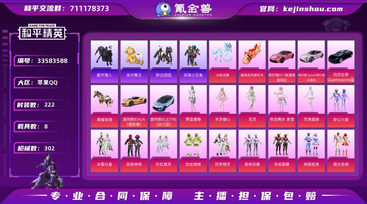【AUG星梦奇缘金鞋都市男神小番茄LED眼罩红眼罩小熊背包 8载具22粉装22特效枪身法素材号 秒换绑不用等】 苹果Q区-116000热力值-222套装-302枪皮 【8载具】 路特斯EL蓝色 路特斯EV黄色 玛莎拉蒂Q蓝色 黑曜夜骑 冰绡玉鳞 踏焰逐风摩托车 保时捷Taycan 旅行版(冰莓粉) 保时捷911 敞篷版(星珀红)【8稀有】 都市猎人 派对舞王(金靴子) 萌熊伴侣背包(小熊背包) 红熊茄茄(权威小潘茄) 放客神游眼镜LED眼罩 红眼罩 Mark.06蓝螳螂 8号机粉螳螂【22粉装】 放客神游 梦幻火箭 缤纷油彩(猪脸妹) 冰霜白皇 恐龙拽拽 寒光使者 筑梦精灵 绚丽摇曳 霁蓝缠春 彩虹鹿灵 霞光圣骑 紫电风暴 赤焰黑爵 心之回忆 音爆索尼克 呆萌星弥 小可学妹 角色-美琪 角色-荧海星豚 角色-奇迹舞步 美雪 角色-羊梦糖心 角色-花灵【22特效枪】 AUG-星梦奇缘(3级) M416-灵猫魔法师(6级) M416-五爪金龙(2级) SCAR-L-锦绣绵绵(5级) SCAR-L-纯梦嫁纱(1级) UMP45-启明星(4级) SPAS-12-音爆索尼克(5级) Kar98K-圣光天使(5级) M762-冷魅冰骑(6级) MG3-炙焰牛王(5级) 蜜獾-荧海星豚(2级) AMR-鸢尾晶梦(5级) 汤姆逊-热量炸弹(5级) GROZA-巴啦啦小魔仙(5级) AKS-74U-无垠阁(6级) 烟雾弹-猫咪绅士(4级) Vector-绯穹魔...