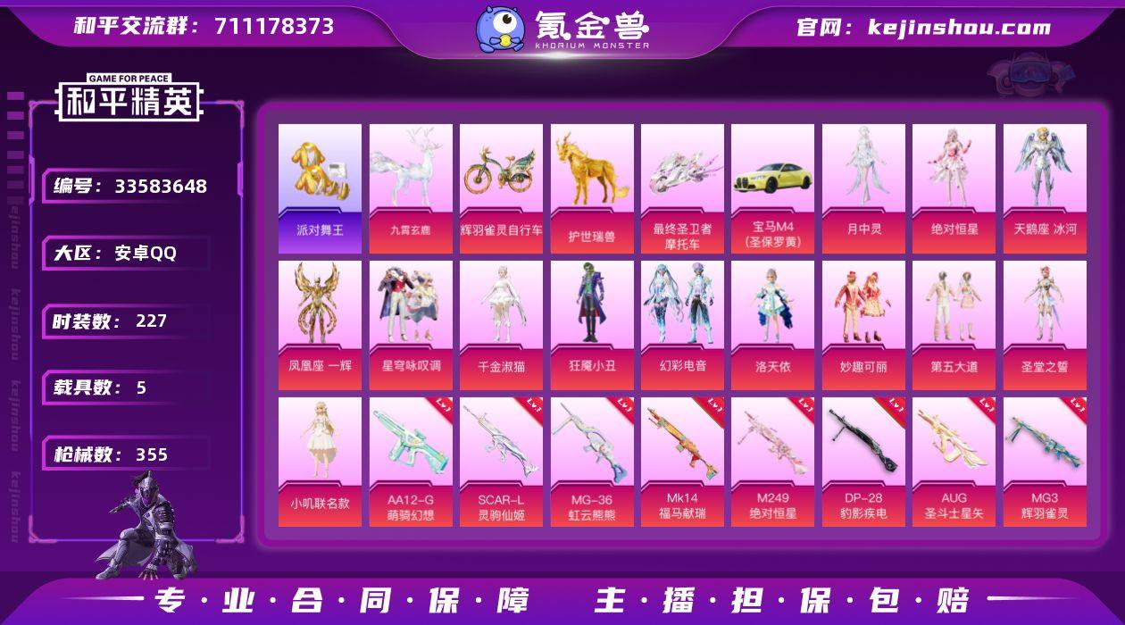 可二次实名【连体号战神框金鞋17特效枪13粉装5载具 送王者至尊宝2传说1金标 秒换绑不用等】 安卓Q区-115728热力值-历史最高段位:无敌战神-227套装-355枪皮 【5载具】 护世瑞兽 九霄玄鹿 最终圣卫者摩托车 宝马M4(圣保罗黄) 辉羽雀灵自行车【2稀有】 派对舞王(金靴子) Mark.06蓝螳螂【13粉装】 小叽联名款 狂魇小丑(新小丑) 洛天依 圣堂之誓 月中灵 绝对恒星 第五大道 妙趣可丽 角色-凤凰座 一辉 星穹咏叹调 角色-天鹅座 冰河 幻彩电音 角色-千金淑猫【17特效枪】 Vector-最终圣卫者(3级) MG3-辉羽雀灵(6级) P90-沙丘之主(3级) M416-五爪金龙(7级) AKM-梦之光华(7级) Mk14-福马献瑞(5级) AA12-G-萌骑幻想(3级) SCAR-L-灵驹仙姬(2级) 燃烧瓶-天降桃花(4级) MG-36-虹云熊熊(5级) M249-绝对恒星(6级) MG3-洛神天依(2级) Mk14-精灵梦叶罗丽(7级) AUG-圣斗士星矢(7级) Kar98K-巳巳如意(5级) DP-28-豹影疾电(5级) MG-36-幻彩电音(1级)【331热门】 雪山精英(老6服) 极速红龙 团圆交子 瑞龙福将 SS9特训 SS8特训 SS6特训 SS27特训 SS26特训 SS25特训 SS24特训 SS23特训 SS22特训 SS10特训 Mk47-洛神天依 M762-乌木金纹 M416-乌木金纹 GROZA-乌木金纹 SCAR-L-玉兔迎春 M762-天降萌叽...