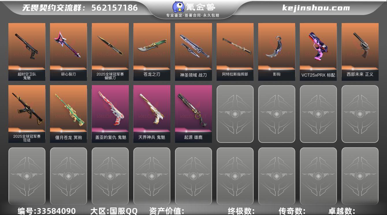 XSQY59【可二次 2025全球冠军赛】【游戏等级】Lv138 【段位】 青铜III 【R点】1,105 【皮肤总价值】40,340 【英雄数量】29 【皮肤数量】91 【挂饰数量】83 【卡面数量】121 【喷漆数量】115 【追猎】追猎-灵魂迸发 【狂怒】狂怒-蒙太奇 狂怒-幻语魔咒 狂怒-神圣领域 狂怒-逆冲蛮牛 【近战武器】近战武器-碎心裂刃 近战武器-2025全球冠军赛蝴蝶刀 近战武器-阿特拉斯指挥部甩棍 近战武器-影钩 近战武器-日耀风暴遗器 近战武器-5周年//公测重制版苍龙之刃 近战武器-诡秘蛇影军刀 近战武器-神圣领域战刀 近战武器-RGX11zPro//2.0蝴蝶刀 【鬼魅】鬼魅-幻心猎手 鬼魅-天界神兵 鬼魅-超时空卫队 鬼魅-甜蜜战术 鬼魅-诡秘蛇影 鬼魅-盖亚的复仇 鬼魅-星云暗涌 【幻影】幻影-甜心猎手 幻影-悠闲猫生 幻影-2022全球冠军赛 幻影-日耀风暴 幻影-末日之翼 幻影-神圣领域 幻影-般若假面 【狂徒】狂徒-盖亚的复仇 狂徒-幻心猎手 狂徒-2025全球冠军赛 狂徒-超时空卫队 狂徒-阿特拉斯指挥部 狂徒-诡秘蛇影 狂徒-掠影 狂徒-创·纪元 【冥驹】冥驹-诛心猎手 冥驹-偃月苍龙 冥驹-甜蜜战术 冥驹-星云暗涌 冥驹-掠影 【戍卫】戍卫-甜心猎手 戍卫-太空穿梭 戍卫-甜蜜战术 戍卫-折光棱晶 戍卫-月球哨兵...