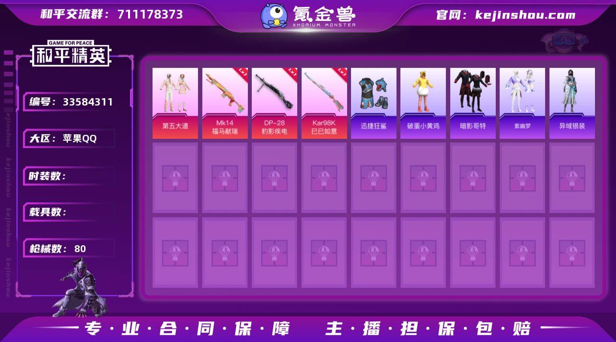 XS11582苹果手Q-1粉装-3特效枪-51套装-80枪皮-4王牌印记-不朽星钻Ⅳ-19194热力值【1粉装】第五大道【3特效枪】Kar98K-巳巳如意[5级],DP-28-豹影疾电[5级],Mk14-福马献瑞[5级]【1稀有】暗影哥特【5飞行器】破刃行动尾迹,光之冒险尾迹,粉色滑翔尾迹,桃源时光飞行器,异域银装飞行器【126其它衣服和枪皮】魅力单车,马上有钱,黄色运动,晨曦薄雾,缤纷果语,SS33特训,遗迹猎人,异域银装,狙击之神,极速光影,SS38特训,彩虹兔,酒红色名流,迅捷狂鲨,青涩时光,紫幽梦,淡雅花蕊,SS31特训,SS37特训,巳巳如意,角色-皓月伶影,破蛋小黄鸡,鱼渊荷华,幻世战舞者,粉恋花,SS34特训,凌霄紫焰,薄荷星砂,恋语绒绒,元气之梦,燕燕于飞,蓝冰羽,大橘大利,顶瓜瓜,野性山猫,战术大师,燕雀桃枝,朱霞炽焰,SS32特训,雪绒豹,角色-申公豹,街头潮人,龙的传人,白熊同盟,游乐,SS36特训,SS35特训,漫游都市,云朵鹅,Mk14-薄荷星砂,S1897-锦灰蝶梦,AKM-涂鸦街区,UMP45-海盐豹豹,SVD-冷漠罗丽,Mini14-绯穹魔姬,S1897-紫幽梦,S686-生命誓言,P92-凌霄紫焰,MP7-G-锦灰蝶梦,PKM-紫幽梦,平底锅-属我最6,平底锅-凌霄紫焰,破片手榴弹-海盐豹豹,VSS-虎痴许褚,ARX-像素花束,SCAR-L-海盐豹豹,AUG-耀粉歌者,Famas-霓彩脉冲,JS9-凌霄紫焰...