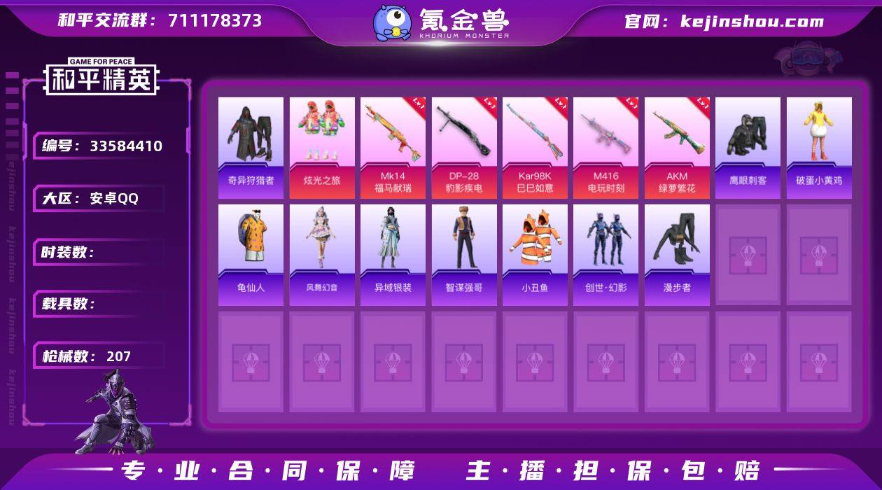 XS11573安卓手Q-2粉装-6特效枪-168套装-207枪皮-17王牌印记-荣耀皇冠Ⅳ-56045热力值【2粉装】炫光之旅,角色-羊梦糖心【6特效枪】ACE32-萌骑漫游[5级],DP-28-豹影疾电[5级],Kar98K-巳巳如意[5级],AKM-绿萝繁花[5级],Mk14-福马献瑞[5级],M416-电玩时刻[5级]【3稀有】小丑鱼,奇异狩猎者,AWM-黄金龙骨【6飞行器】鸡智如我飞行器,狂鲨锋刃飞行器,顶峰精英尾迹,炫彩糖果飞行器,异域银装飞行器,破刃行动尾迹【1头盔】金羽特工头盔【1背包】金羽特工背包【364其它衣服和枪皮】牛气满满,极速红龙,破蛋小黄鸡,玉兔迎春,异域银装,燃烧卡路里,SS17特训,血色贵族,涂山之恋,雨过天青,SS19特训,角色-都市丽猫,朱霞炽焰,白色伏地魔,飞行日记,香桃花海,智谋强哥,恋语绒绒,清新柠檬,SS38特训,曼妙人鱼,旭日情侣,快乐星愿,柠萌假日,幻影武者,街头风暴,凌霄紫焰,福马献瑞,红色运动,青年教官,风舞幻音,黄色伏地魔,炫彩糖果,滨海假日,绮丽涂鸦,锦衣飞扬,SS28特训,SS31特训,创世·幻影,SS35特训,甜蜜熊情侣,漫步者,SS25特训,元气之梦,龙的传人,冰河战士,雨林探路者,夏日音浪,黑色伏地魔,炫蓝之夏,黄色名流,SS21特训,纯真浪花,完美偶像,惊鸿侠骨,角色-幸运青,SS29特训,角色-皓月伶影,蓝色运动,热情海星,...