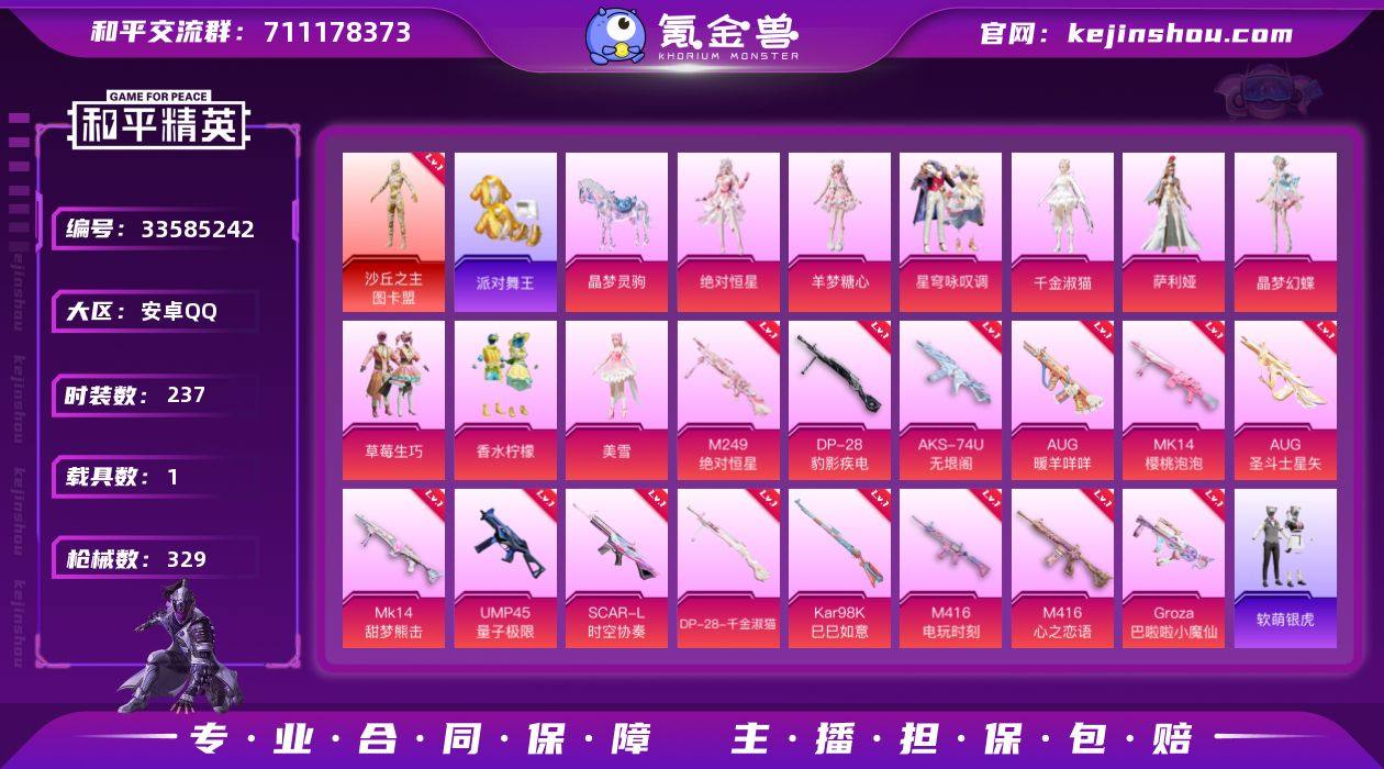 1红装 10粉装 18粉枪 1载具 2稀有装备 237套装 329枪皮 46热门 晶梦灵驹 派对舞王(金靴子) 沙丘之主-图卡盟 稀有紫装-派对舞王(金靴子) 缤纷油彩(猪脸妹) 草莓生巧 香水柠檬 绝对恒星 深蓝冒险家 迷域探索者 机械征服者 吉莉礼服 军械专家 北国孤狼 虎虎生威吉莉 跃动心情 核芯基因 精神漫游 空投萌叽 智慧之神 炫蓝之夏 猎梦纪元 黄色名流 牛气满满 猛禽 青春冒险家 潮流游乐家 破晓战魂 原初圣火 逆风勇士 萌趣颜团子 特种颜团子 镭射皇者 银白舞王 耀粉歌者 治愈之星 科技之星 浪漫樱花 飞行日记 莱茵河畔 福星高照 暗夜傀儡 柠萌假日 王牌教练 雪兔飞飞 飞驰魅影 音速流光 冷焰舞者 魔力冰咖 香榭午后 竞技名士 深蓝色名流 酒红色名流 战地督导 灼焰舞者 龙的传人 玉兔迎春 特战装甲 时尚圣诞 湖蓝色名流 滨海假日 完美偶像 千禧之恋 街头潮人 怒火燎原 蓝彩潮人 绮丽涂鸦 神秘领域 特殊使命 缤纷果语 风行保卫者 丛林猎人 幻世战舞者 麻辣教官 人气偶像 都市魅力 夏日音浪 热血青春 沙漠兵团 探宝勇士 海上生明月 角色-美雪 角色-萨利娅 星穹咏叹调 角色-晶梦幻蝶 角色-羊梦糖心 角色-千金淑猫 SCAR-L-时空协奏(3级) M416-心之恋语(7级) M249-绝对恒星(4级) S686...