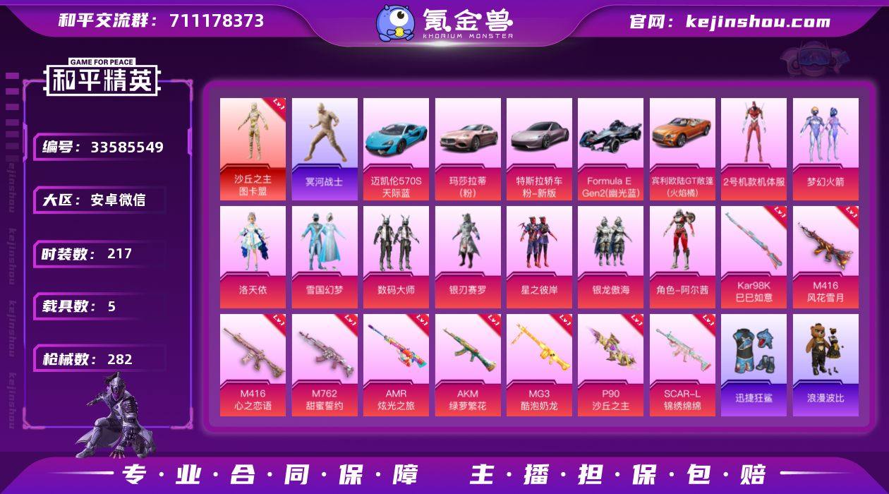 1红装 12粉装 9粉枪 5载具 1稀有装备 217套装 282枪皮 60热门 玛莎拉蒂Ghibli(粉) 特斯拉Roadster(沁心粉) Formula E Gen2(幽光蓝) 宾利欧陆GT敞篷(火焰橘) 迈凯伦570S(天际蓝) 木乃伊 沙丘之主-图卡盟 稀有紫装--木乃伊(冥河战士) 2号机款机体服(红螳螂) 梦幻火箭 雪国幻梦(冰雪女王) 洛天依 数码大师 星之彼岸 深蓝冒险家 迷域探索者 阿尔茜 机械征服者 吉莉礼服 军械专家 星梦畅游 幻羽潜行 虎虎生威吉莉 疯狂小兔子 艾克斯奥特曼 舞夜骑士 空投萌叽 智慧之神 萌黄之夏 猎梦纪元 超能拳王 神秘舞者 黄色名流 牛气满满 甜蜜告白 青春冒险家 潮流游乐家 鹤鸣 原初圣火 逆风勇士 隐空刺 天籁歌者 萌趣颜团子 电音精灵 特种颜团子 薰款战斗服 镭射皇者 银白舞王 耀粉歌者 迅捷之星 治愈之星 科技之星 浪漫樱花 飞行日记 熠彩粉晶 焰山流火 暴风机械师 福星高照 神气柴柴 时空追击者 甜梦熊熊 浑天鲲鹏 柠萌假日 王牌教练 青玉碎影 春野茶蘼 青芒树下 飞驰魅影 华灯初上 零款战斗服 龟仙人 音速流光 冷焰舞者 空岛之星 贝斯之夜 贵族骑装 金戈铁马 惊鸿侠骨 萌趣咩咩 竞技名士 娇憨猪猪 锦衣飞扬 深蓝色名流 蓝调潮人 元气发射 灼焰舞者 龙的传人 玉兔迎春 快闪甜心 特战...