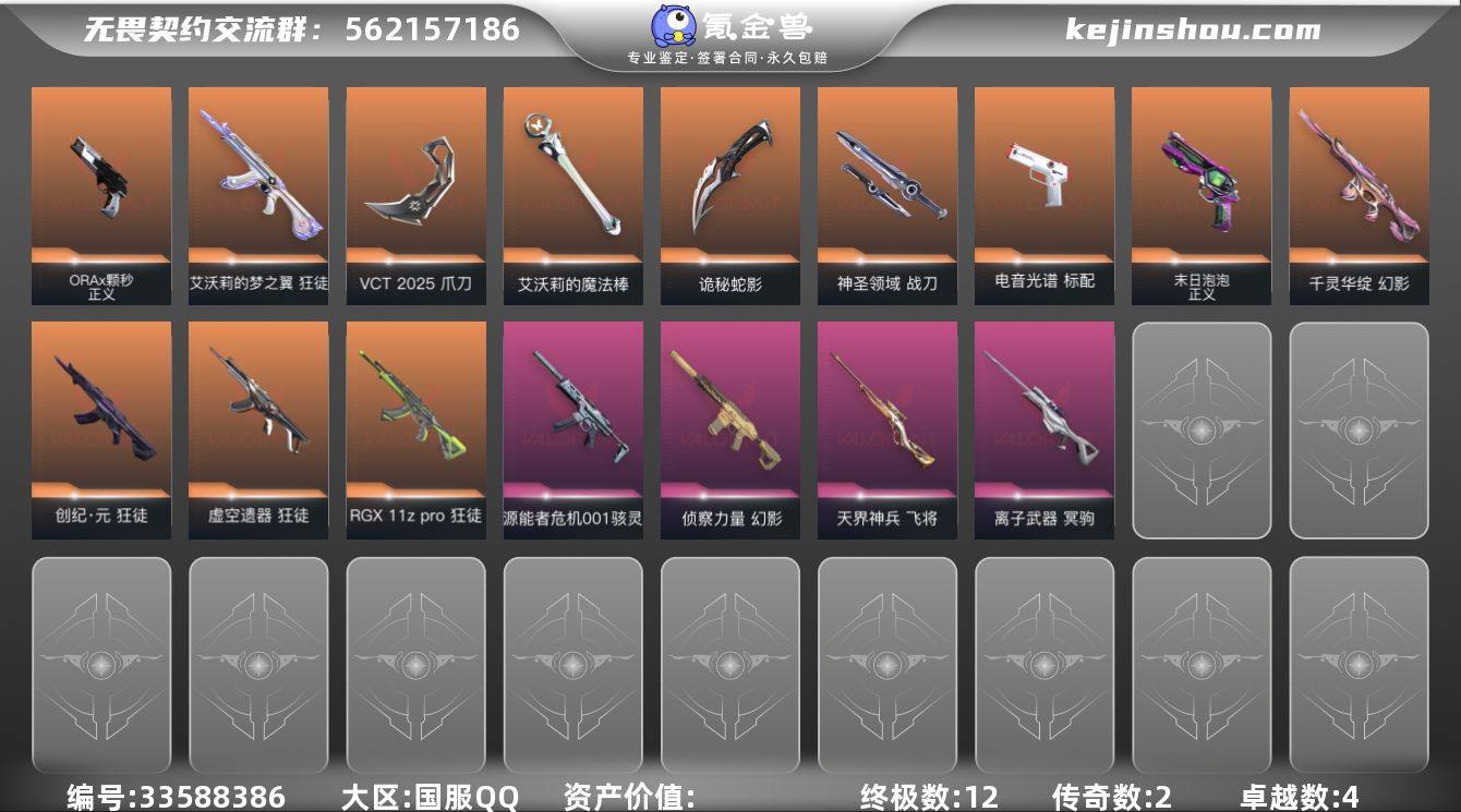 【kywwqy293】【套装】:VCT 2025 赛季套装 【英雄】:幻棱,炼狱,暮蝶,钛狐,壹决,捷风,不死鸟,贤者,猎枭,蝰蛇,芮娜,尚勃勒,斯凯,海神,盖可,黑梦 【近战武器】:近战武器-流风回雪,近战武器-谐波音谱,近战武器-VCT 2025 爪刀,近战武器-艾沃莉的魔法棒,近战武器-诡秘蛇影 军刀,近战武器-神圣领域 战刀 【狂徒】:狂徒-创·纪元,狂徒-虚空遗器,狂徒-RGX 11z Pro,狂徒-艾沃莉的梦之翼,狂徒-诡秘蛇影 【幻影】:幻影-千灵华绽,幻影-侦察力量,幻影-神圣领域,幻影-末日之翼 【戍卫】:戍卫-月球哨兵,戍卫-折光棱晶 【獠犬】:獠犬-神圣领域 【冥驹】:冥驹-离子武器,冥驹-星云暗涌 【飞将】:飞将-天界神兵,飞将-末日之翼 【莽侠】:莽侠-诡秘蛇影,莽侠-月球哨兵 【战神】:战神-神圣领域 【奥丁】:奥丁-末日之翼 【判官】:判官-诡秘蛇影 【雄鹿】:雄鹿-月球哨兵 【骇灵】:骇灵-源能者危机001,骇灵-无限竞技,骇灵-星云暗涌 【蜂刺】:蜂刺-星云暗涌,蜂刺-折光棱晶 【标配】:标配-电音光谱,标配-折光棱晶,标配-电音光谱 【正义】:正义-末日泡泡,正义-ORA x 颗秒,正义-月球哨兵 【鬼魅】:鬼魅-诡秘蛇影,鬼魅-星云暗涌 【狂怒】:狂怒-神...