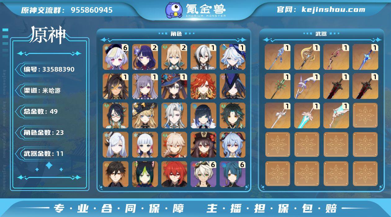 有kfc限定皮肤,练度高,有胡桃皮肤