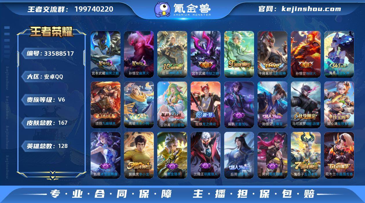 【金标伽罗 金标阿轲】安卓手Q149区167皮0典藏5传说0无双V4 营地ID363227408至尊星耀II【优质限定皮肤】:至尊宝【传说皮肤】:地狱之眼,神树通天,久胜战神,地狱火,鸣野蒿【史诗皮肤】:水晶猎龙者,乘风破浪,无限星赏官,幽灵船长,末日机甲,九幽镇关,地狱岩魂,功夫厨神,灵蛊蚀心,未来纪元,高山流水,龙之律动,心灵骇客,鬼剑武藏,涂山容容,赏金猎手,五谷丰年,原初追逐者,暗隐猎兽者,圣诞狂欢,霸王别姬,星夜王子,冰雪圆舞曲,李小龙,暗影游猎,至尊宝,魔术师,银河之约,如梦令,缤纷独角兽,皇家上将,白龙吟,逐浪之夏,驯魔猎人,暗夜猫娘,千年之狐,梁祝,鹰眼统帅,圣诞恋歌,水果甜心,节奏热浪,妄想食味,魅力维加斯,箭羽风息,特工魅影,摇滚巨星