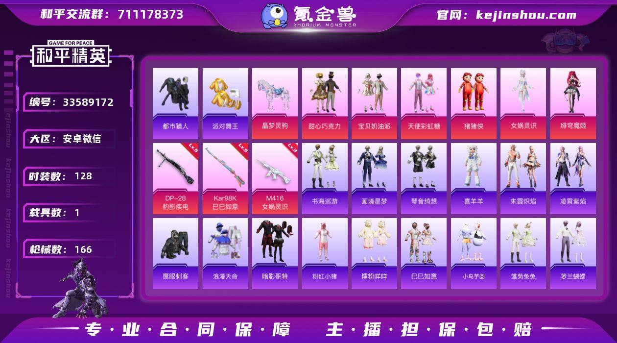【AZH3644】安卓 微信【都市巧克力三姐妹金靴子糯粉咩咩 1载具】6粉装-6特效枪-1载具-5粉色飞行器-49327热力值-8王牌印记-128套装-166枪皮 【热门品类】:套装-浪漫天命,套装-都市猎人,套装-派对舞王,套装-暗影哥特,套装-粉红小猪,套装-糯粉咩咩 【粉色套装】:粉装-甜心巧克力,粉装-宝贝奶油派,粉装-天使彩虹糖,玩偶服-猪猪侠,角色-女娲灵识,角色-绯穹魔姬 【粉色枪皮等级】:M416-女娲灵识(三级),AKS-74U-森灵之息(五级),Kar98K-巳巳如意(五级),Mk14-福马献瑞(五级),AA12-G-萌骑幻想(四级),DP-28-豹影疾电(五级) 【粉色载具】:晶梦灵驹 【粉色枪皮】:M416-女娲灵识,AKS-74U-森灵之息,Kar98K-巳巳如意,Mk14-福马献瑞,AA12-G-萌骑幻想,DP-28-豹影疾电 【粉色飞行器】:香车宝马飞行器,晶梦幻蝶飞行器,戏水时光飞行器,桃源时光飞行器,六号石头人降落伞 【粉色降落伞】:甜心宝贝降落伞,千金淑猫降落伞,晶梦幻蝶降落伞,无垠阁降落伞,虹云熊熊降落伞 【稀有套装】:套装-巳巳如意,套装-小鸟芋圆,角色-阿虎,套装-马上有钱,套装-迅捷龙虾,套装-遗迹猎人,套装-雏菊兔兔,套装-萝兰蝴蝶,套装-小熊娃娃,角色-狂花道·娜可露露,角色-狂花道·雅典...