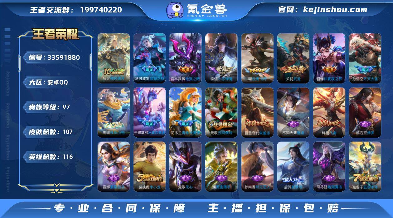 【性价比推荐·深海之息·武圣·齐天大圣·一念神魔·云鹰飞将·可二次】YXw24982-安卓Q-116英雄-107皮肤-1王者印记-290铭文-贵族积分2w【贵族7】【8传说·1天幕·3按键】【因赛季更新游戏段付以上号为准!】 【英雄全皮】:孙权全皮 【天幕】:共赏芳华天幕 【传说皮肤】:后羿神树通天,孙悟空齐天大圣,马可波罗深海之息,关羽武圣,曜云鹰飞将,李信一念神魔,貂蝉仲夏夜之梦,宫本武藏地狱之眼 【限定皮肤】:狄仁杰阴阳师,赵云皇家上将,庄周高山流水,高渐离玩趣恶龙,芈月幻夜卜梦,元歌云间偶戏,元歌无心,马可波罗深海之息,狄仁杰魔术师,狄仁杰万华元夜,达摩沙漠行僧,项羽海滩派对,老夫子醍醐杖,关羽武圣,程咬金演武夺筹,韩信飞衡,兰陵王金庭之子,花木兰青春决赛季,亚瑟潮玩骑士王,孙悟空齐天大圣,后羿如梦令,后羿圣弓游侠,李元芳云中旅人,钟馗驱傩正仪,干将莫邪冰霜恋舞曲,干将莫邪真爱魔法,鬼谷子原初探秘者,鬼谷子五谷丰年,黄忠火炮绅士,苏烈千军破阵,百里守约朱雀志,沈梦溪大漠名商,裴擒虎李小龙,云中君纤云弄巧,嫦娥拒霜思,艾琳女武神 【年限皮肤】:百里守约朱雀志,韩信飞衡 【赛季限定】:老夫子醍醐杖,鬼谷子原初探秘者,狄仁杰万华...