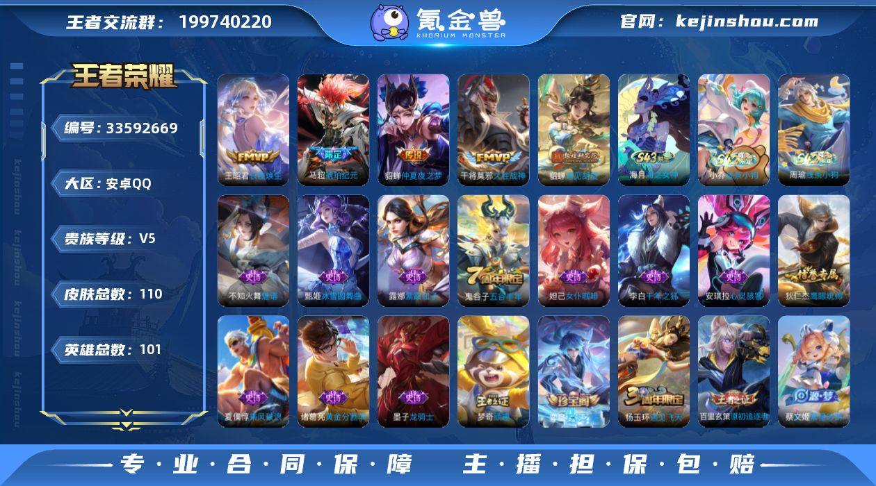 实名: 可修改 性别: 男号 贵族等级: V5 英雄数: 101 皮肤数: 110 传说皮: 久胜战神,仲夏夜之梦,遇见胡旋,琥珀纪元马超,长夜焕生 限定皮: 遇见飞天,五谷丰年 亮点: 【优质装备】:久胜战神,仲夏夜之梦(大飞蛾),遇见胡旋,琥珀纪元马超