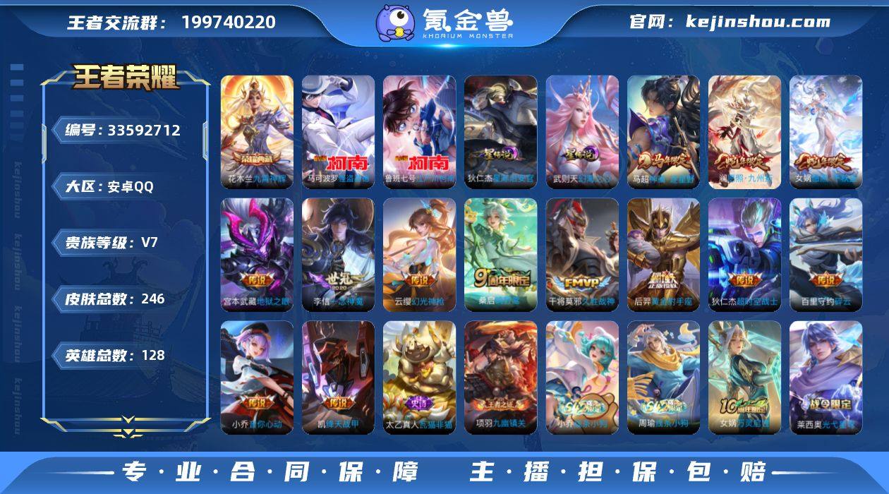 巅峰发育路百星印记12王者印记7个性按键铭文150级 安卓Q-V7-至尊星耀IV段位-128英雄-246皮肤-1典藏皮肤-2珍品传说-13传说-61史诗 【英雄全皮】:孙权全皮,敖隐全皮 【荣耀典藏】:花木兰九霄神辉 【珍品传说】:鲁班七号江户川柯南,马可波罗怪盗基德 【传说皮肤】:马超神骥逐星野,女娲愿照千秋盛,澜愿照九州拓,云缨幻光神枪,桑启鸣野蒿,百里守约碎云,小乔音你心动,铠绛天战甲,李信一念神魔,干将莫邪久胜战神,后羿黄金射手座,宫本武藏地狱之眼,狄仁杰超时空战士 【限定皮肤】:狄仁杰阴阳师,赵云皇家上将,孙尚香蔷薇恋人,高渐离玩趣恶龙,扁鹊奇幻香踪,元歌无心,甄姬游园惊梦,马可波罗山海玄木吟,狄仁杰魔术师,狄仁杰万华元夜,达摩沙漠行僧,项羽海滩派对,老夫子醍醐杖,程咬金演武夺筹,韩信飞衡,兰陵王金庭之子,花木兰瑞麟志,孙悟空孙行者,后羿圣弓游侠,李元芳银河之约,李元芳云中旅人,钟馗驱傩正仪,杨戬潮玩骑兵,干将莫邪真爱魔法,鬼谷子原初探秘者,鬼谷子五谷丰年,苏烈千军破阵,百里玄策原初追逐者,弈星混沌棋,梦奇顽趣,沈梦溪星空之诺,沈梦溪大漠名商,明世隐疑决卦,裴擒虎李小龙,裴擒虎擒涛扼浪,云中君纤云弄巧,盾山御銮...