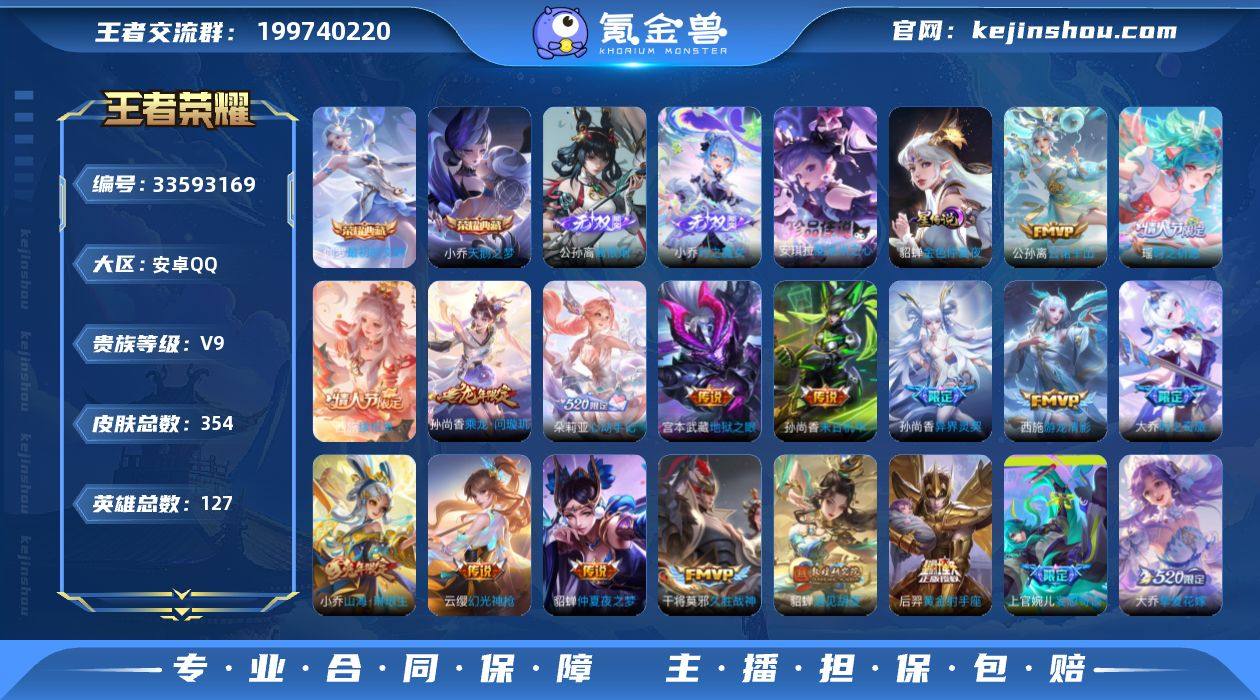 ·天鹅之梦·最初的交响·时之魔女·离恨烟·拉酷洛米之心·寅虎焰心·瑶时之祈愿·神骥鸣幻洲·神骥聚万邦·愿照千秋盛·愿照众生和·乘龙问璇玑·大乔时之奇旅·山海琳琅生·星穹之声·挚爱花嫁·遇见胡旋·无二次包过】w25065-安卓Q-127英雄-354皮肤-19王者印记-180铭文-贵族积分12w【贵族9】【2典藏·2无双·1珍品·2星传说·35传说·2天幕·15按键】【因赛季更新游戏段付以上号为准!】 【英雄全皮】:孙权全皮,西施全皮,空空儿全皮,影全皮,少司缘全皮 【荣耀典藏】:小乔天鹅之梦,伽罗最初的交响 【无双皮肤】:公孙离离恨烟,小乔时之魔女 【珍品传说】:安琪拉酷洛米之心 【星元皮肤】:貂蝉金色仲夏夜,鲁班七号寅虎焰心 【天幕】:共赏芳华天幕,鲲天幕 【传说皮肤】:朵莉亚神骥鸣幻洲,貂蝉神骥聚万邦,王昭君长夜焕生,后羿神树通天,干将莫邪千山共赴,公孙离云诺千山,西施续相思,女娲愿照千秋盛,妲己愿照众生和,云缨幻光神枪,王昭君映山客,桑启鸣野蒿,朵莉亚心动手记,孙尚香乘龙问璇玑,大乔时之奇旅,上官婉儿妄想奇谈,小乔山海琳琅生,王昭君星穹之声,大乔挚爱花嫁,瑶时之祈愿,鲁班七号寅虎瑞焰,孙尚香异界灵契,貂蝉遇见胡旋,西施游龙清影,李元芳飞鸢探春,虞姬...