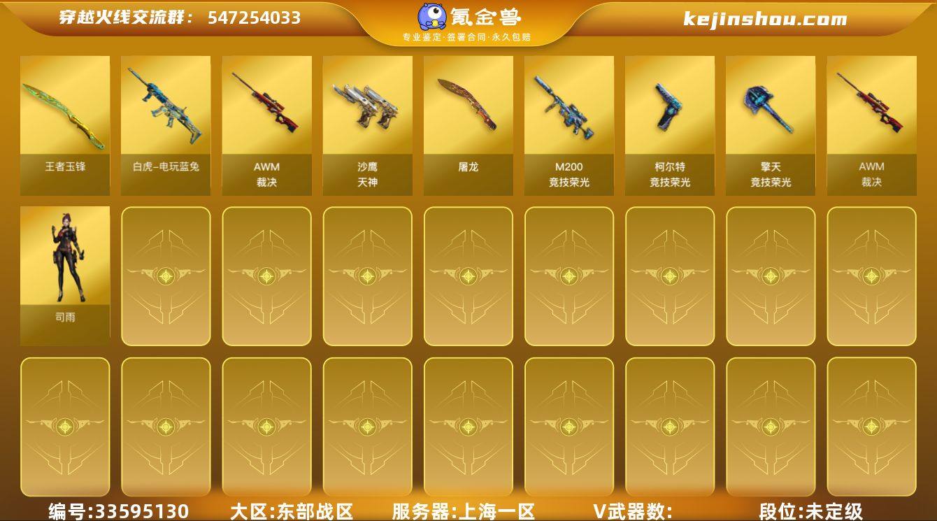XD1088/东部/上海一区/可排位/【枪王1】/【Lv.86 少将5】/24V/M200竞技荣光套/星神/星神音效卡/白虎电玩蓝兔/朱雀电竞之星/柯尔特竞技荣光/三套竞技荣光雷/【枪皮】/【无幻神】/幻神电竞之星/裁决运输船/炽芒蝶刃荣耀世冠白鲨/【角色】/星际战将/战地猎狐/【道具】/各种戒指/永久AC/永久雷包/细节看图/【此账号封过十年已解】