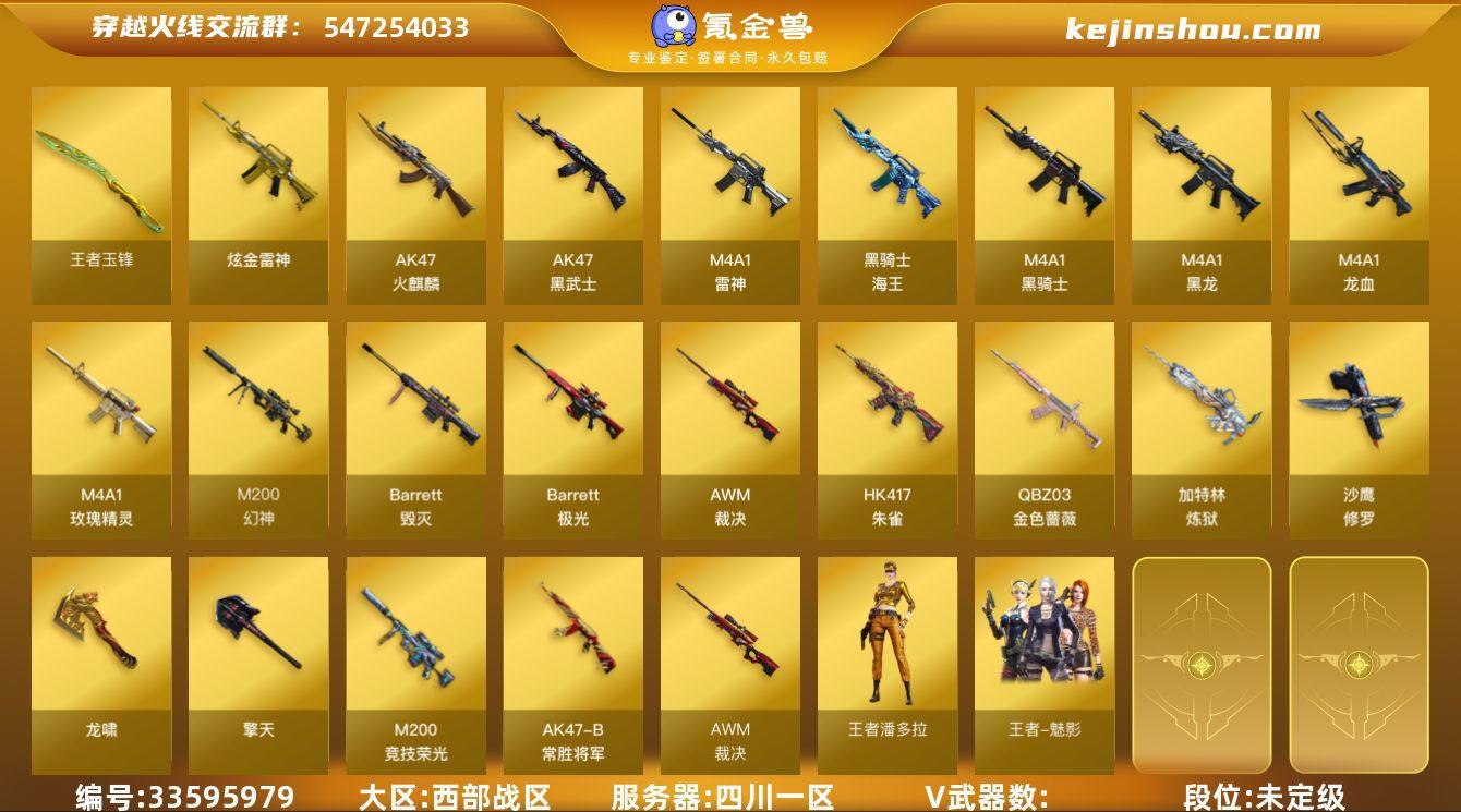 XD0034/【钱包无法注销】西部/四川一区/【荣耀之巅39豆】【Lv.100 高阶大元帅】/VIP6/54V/幻神/幻神丹凤/M200竞技荣光/QBZ金色蔷薇/朱雀/QBZ独角IV/黑武士锦绣游龙/黑骑士海王/裁决/【音效卡】/黑骑士音效卡/烈火动感闪耀/毁灭音效卡/炼狱百战金芒庆典舞曲音效【枪皮】毁灭墨兰/毁灭风暴/火麒麟心动糖果/火麒麟轻羽/雷神神秘按键【四防】王者额潘多拉/【角色】魅影/修道士/铁扇公主/奇洋探员/【道具】/永久烟雾头/护目镜/各种戒指/各种光效/各种玩偶/永久AC/永久雷包/细节看图/【此账号封过十年已解】