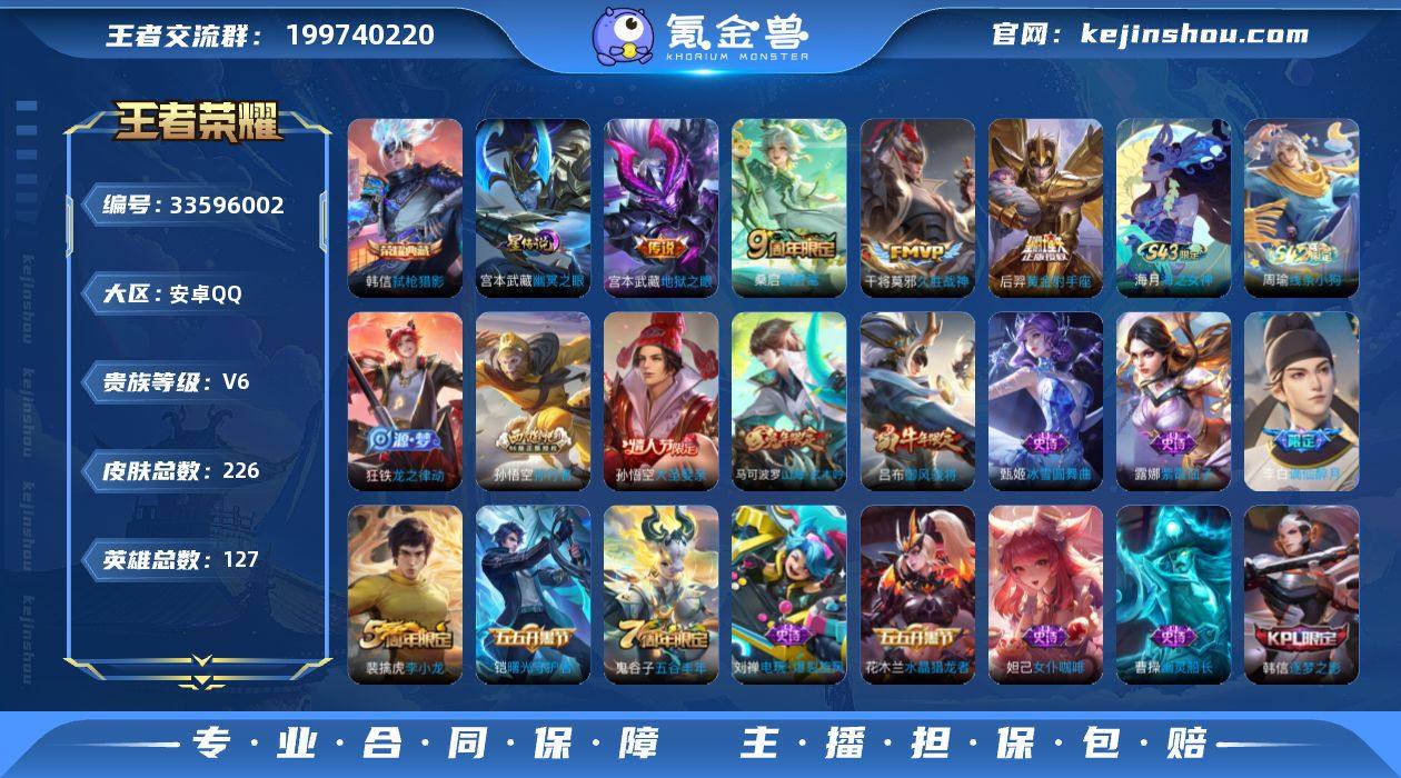 Y-QR2653 安卓QQV6 226皮 1典藏1星元 67限定4传说 全能高手 打野25段 发育路24段 3按键 1天幕 2238星币 443英雄碎片 273亲密玫瑰 17印记 2荣耀印记 营地号:2119517396【荣耀典藏】弑枪猎影, 【星元皮肤】幽冥之眼, 【热门限定】御风骁将,逐梦之影,大圣娶亲,山海·玄木吟, 【限定传说】猫狗日记男,久胜战神,猫狗日记女,孙行者,地狱之眼,龙骑士,梁祝,未来纪元,黄金射手座,黄金分割率,千年之狐,末日机甲男,原初探秘者,原初追逐者,黎明之约,暗隐猎兽者,水晶猎龙者,金属风暴,地狱岩魂,特工魅影,曙光守护者,圣诞恋歌,逐浪之夏,心灵战警,紫霞仙子,功夫厨神,幽灵船长,乘风破浪,圣诞狂欢,星夜王子,绅士熊喵,偶像歌手,街头霸王,缤纷独角兽,鬼剑武藏,冰冠公主,花好人间,重明,穷奇,御狮,御霄,御旌,御銮,朔风刀,混沌棋,疑决卦,醍醐杖,万华元夜,东方不败,女仆咖啡,霸王丸,敏锐之力,丁香结,