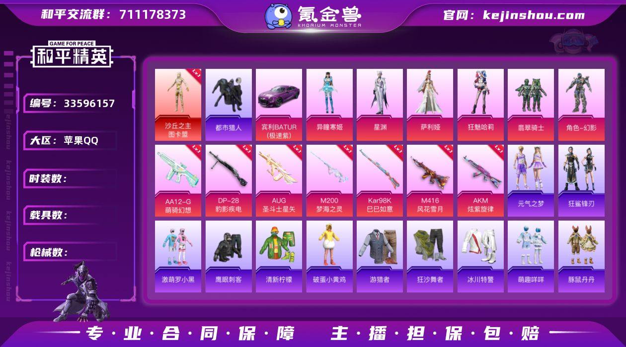 WJ920【图卡盟[3级]1载具-1神装-4粉装-8特效枪】苹果手Q-1载具-1神装-4粉装-8特效枪-180套装-246枪皮-10王牌印记-不朽星钻Ⅲ-80065热力值【1载具】宾利BATUR(极速紫)【1神装】沙丘之主-图卡盟[3级]【4粉装】角色-异瞳寒姬,角色-萨利娅,翡翠骑士,角色-狂魅哈莉【8特效枪】M200-梦海之灵[3级],M416-风花雪月[7级],AKM-炫紫旋律[7级],DP-28-豹影疾电[5级],Mk14-福马献瑞[5级],AUG-圣斗士星矢[7级],AA12-G-萌骑幻想[5级],Kar98K-巳巳如意[5级]【5稀有】浪漫天命,激萌罗小黑,狂沙舞者,都市猎人,暗影哥特【13飞行器】荒原烈焰飞行器,鸡智如我飞行器,红色滑翔尾迹,粉色滑翔尾迹,马上有福飞行器,沙丘之主天马,圣域金龙飞行器,破刃行动尾迹,幻海精灵飞行器,终晖之翼飞行器,异域银装飞行器,狂鲨锋刃飞行器,登顶巅峰飞行器【1背包】幻影战神背包【432其它衣服和枪皮】星渊小夜曲,薄荷星砂,街头潮人,SS20特训,科技之星,幻彩翩翩,核芯基因,牛气冲天,焰鹰斗篷,鹰眼刺客,燕雀桃枝,极地朋克,冰川特警,六六大吉,龙魂突击队,轻风白浪,黄色伏地魔,青春校园,玲珑侠影,青春冒险家,吉莉礼服,萌趣颜团子,滨海假日,海岛探路者,青翼流星,异彩先驱,混沌火种,绚紫流光,凌霄紫焰,清新柠檬,快闪甜心,漫步者,...